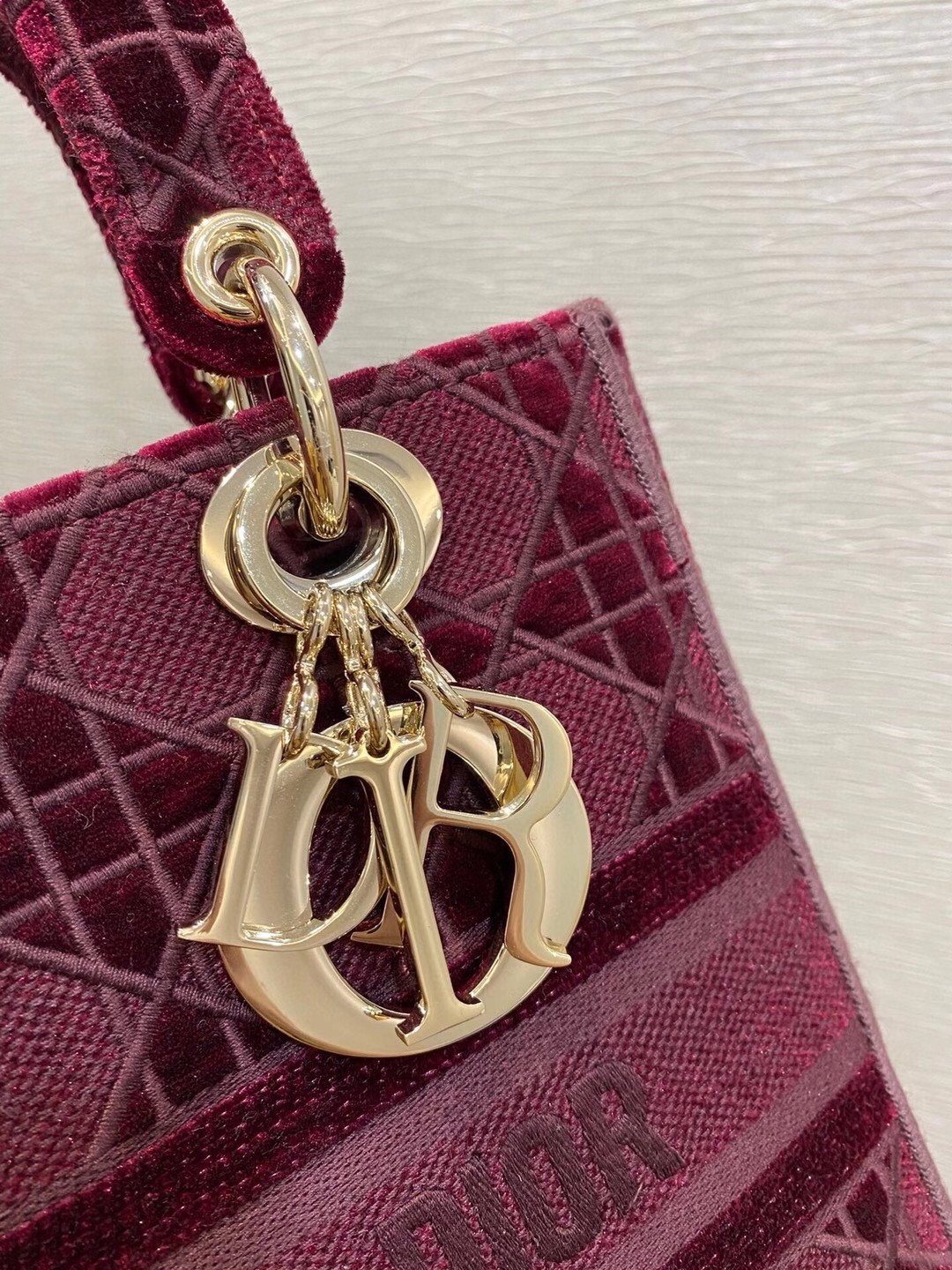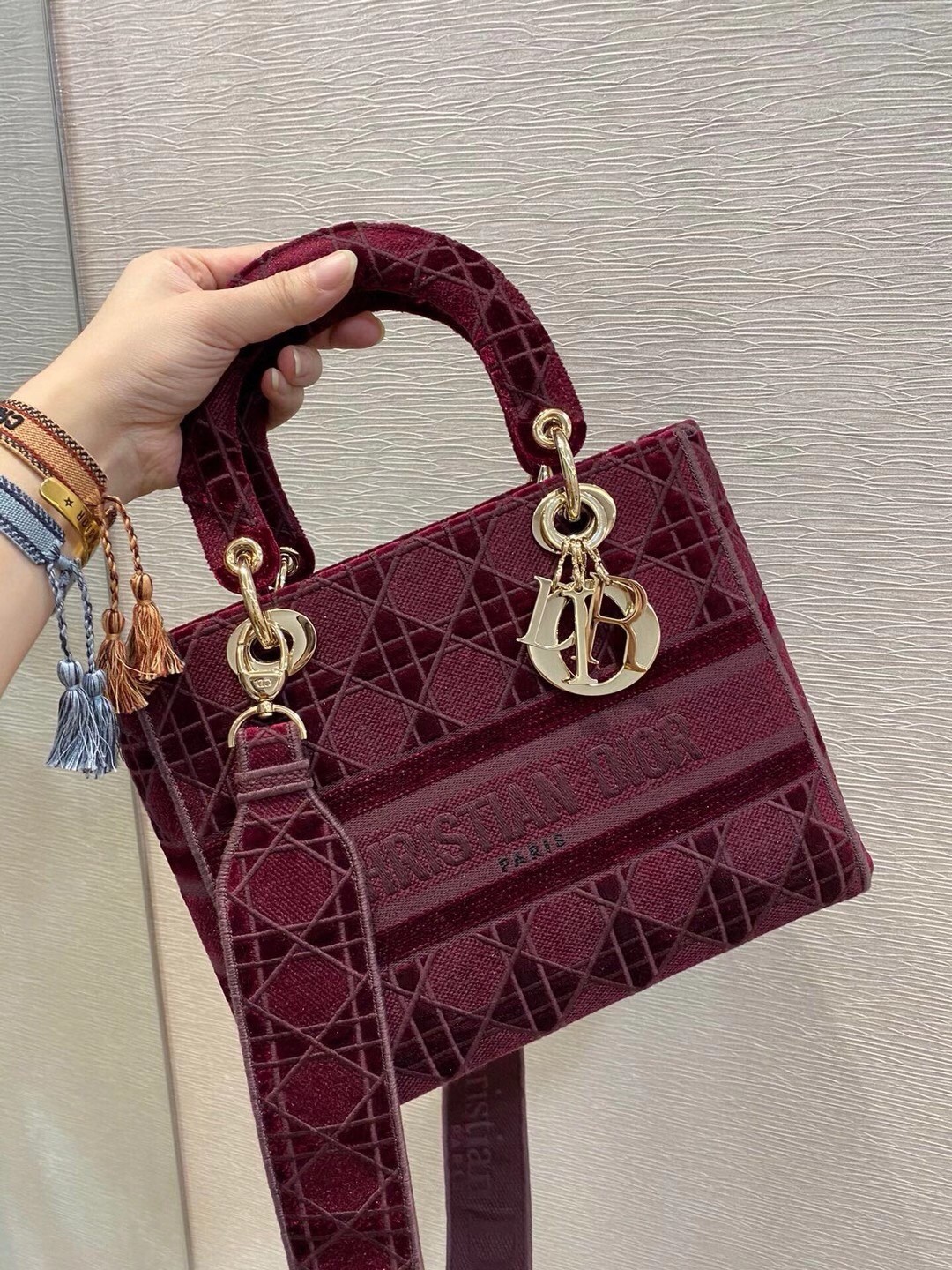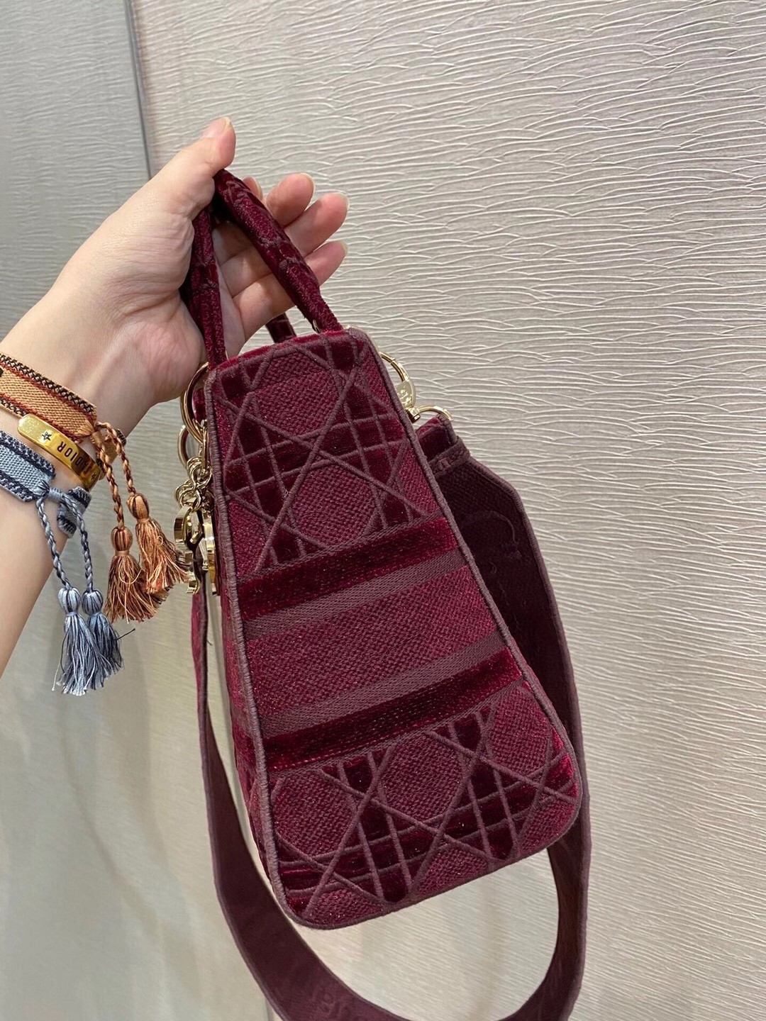 Dior Medium Lady D-Lite Bag In Bordeaux Embroidered Velvet