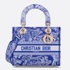 The Lady D-Lite bag combines classic elegance with House modernity. Part of the Dioriviera capsule collection, the silhouette is fully embroidered with the fluorescent blue Toile de Jouy Reverse motif and punctuated with the ‘CHRISTIAN DIOR PARIS’ signature on the front, while ‘D.I.O.R.’ charms in pale gold-finish metal enhance and illuminate the silhouette. Equipped with a wide reversible and removable embroidered shoulder strap, the medium Lady D-Lite bag can be carried by hand or worn crossbody, and can be coordinated with other Dioriviera creations.