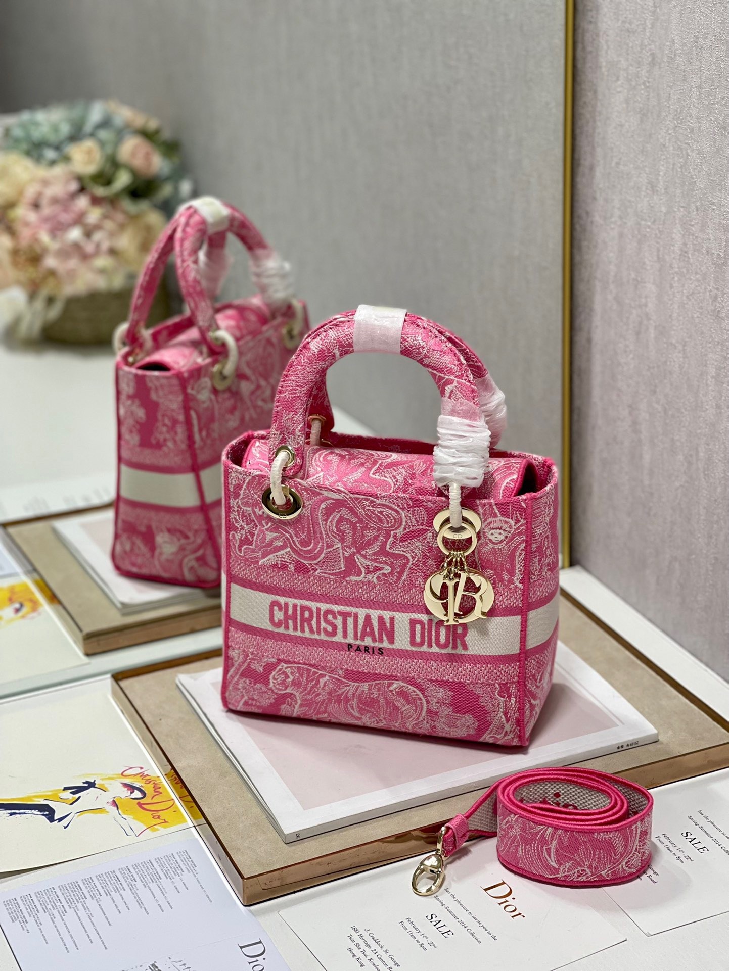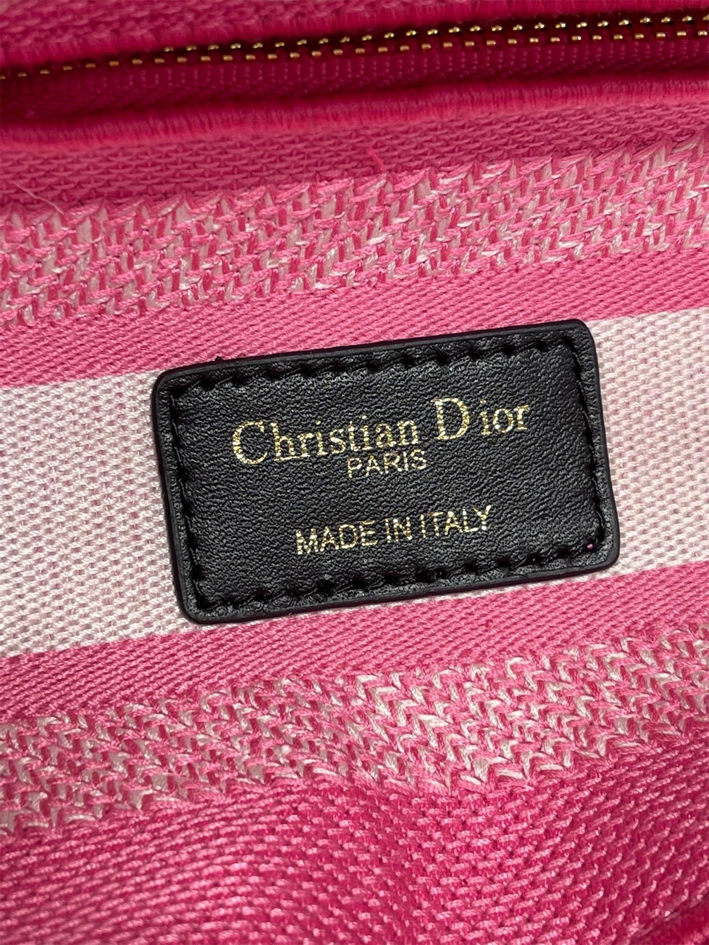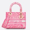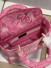 The Lady D-Lite bag combines classic elegance with House modernity. Part of the Dioriviera capsule collection, the silhouette is fully embroidered with the fluorescent blue Toile de Jouy Reverse motif and punctuated with the ‘CHRISTIAN DIOR PARIS’ signature on the front, while ‘D.I.O.R.’ charms in pale gold-finish metal enhance and illuminate the silhouette. Equipped with a wide reversible and removable embroidered shoulder strap, the medium Lady D-Lite bag can be carried by hand or worn crossbody, and can be coordinated with other Dioriviera creations.