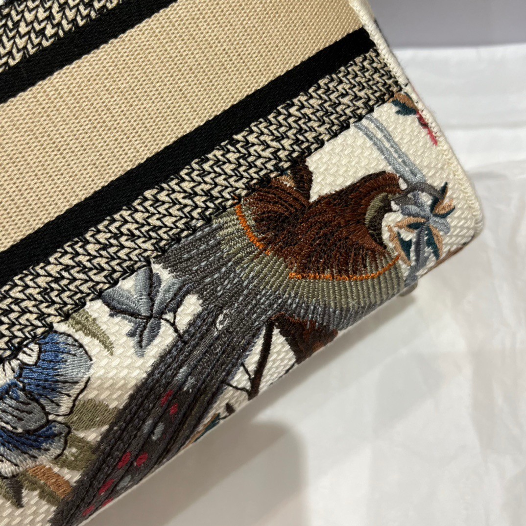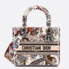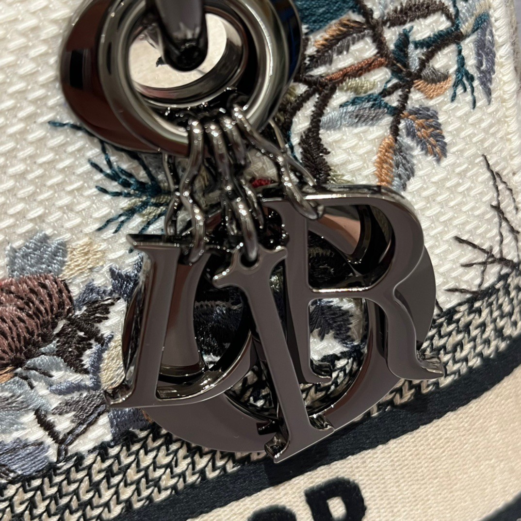 The Lady D-Lite bag combines classic elegance with House modernity. Fully embroidered with an ecru multicolor Dior Jardin d’Hiver motif, the style offers a poetic and exotic interpretation of Mr. Dior’s wall tapestries. The front features a ‘CHRISTIAN DIOR PARIS’ signature while ‘D.I.O.R.’ charms in ruthenium-finish metal enhance and illuminate the silhouette. Equipped with a wide, reversible and removable embroidered shoulder strap, the medium Lady D-Lite bag can be carried by hand or worn crossbody.