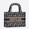 The Mini Dior Book tote, an original style introduced by Dior’s creative director Maria Grazia Chiuri, has become a staple of the Maison’s aesthetic. Ideally designed to carry a paperback-sized book and some daily essentials, the mini bag is made of fully embroidered canvas and features the logo mania original Dior Oblique pattern with the “Christian Dior” signature on the front. This carryall is a perfect example of the Dior savoir-faire. It may be paired with small leather goods accessories for a complete look.