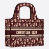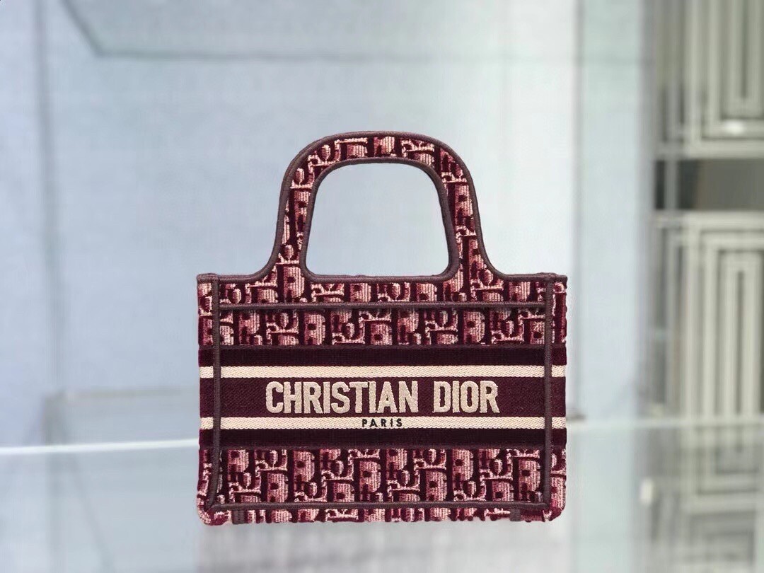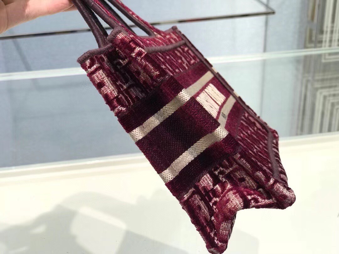Introduced by Maria Grazia Chiuri, the Dior Book Tote has become a staple of the Dior aesthetic. The mini shape portrays a vibrant, fully embroidered bordeaux Dior Oblique motif with smooth velvet and matte contrasting cotton thread for a textured feel. This carryall is a perfect example of the Dior savoir-faire and may be combined with any Dior Oblique piece for a total look.