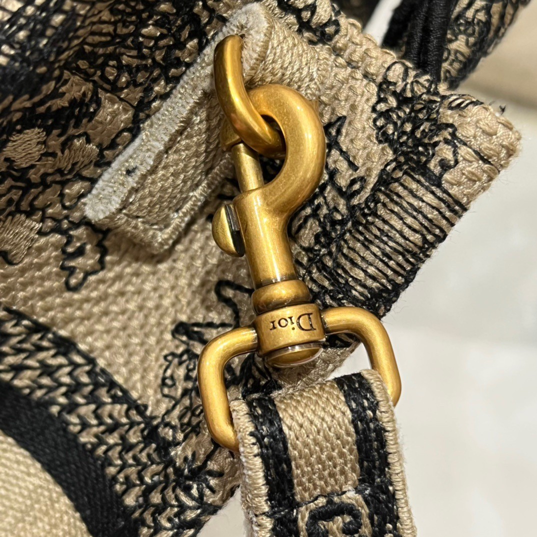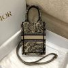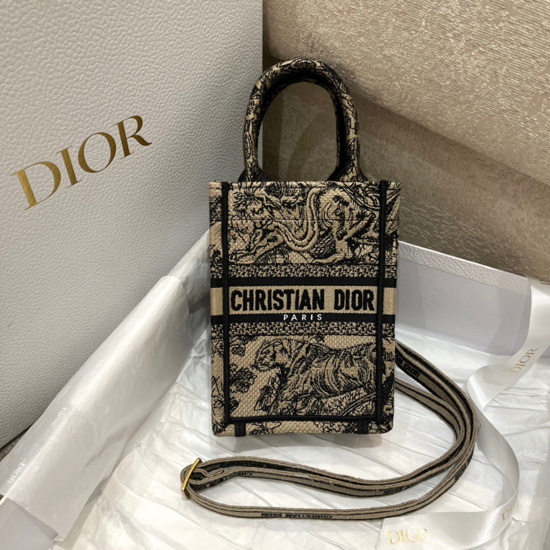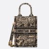 Maria Grazia Chiuri’s phone bag enriches the iconic Dior Book Tote line with an ideal example of the House’s savoir-faire. The style is entirely embroidered with the hazelnut Toile de Jouy motif
