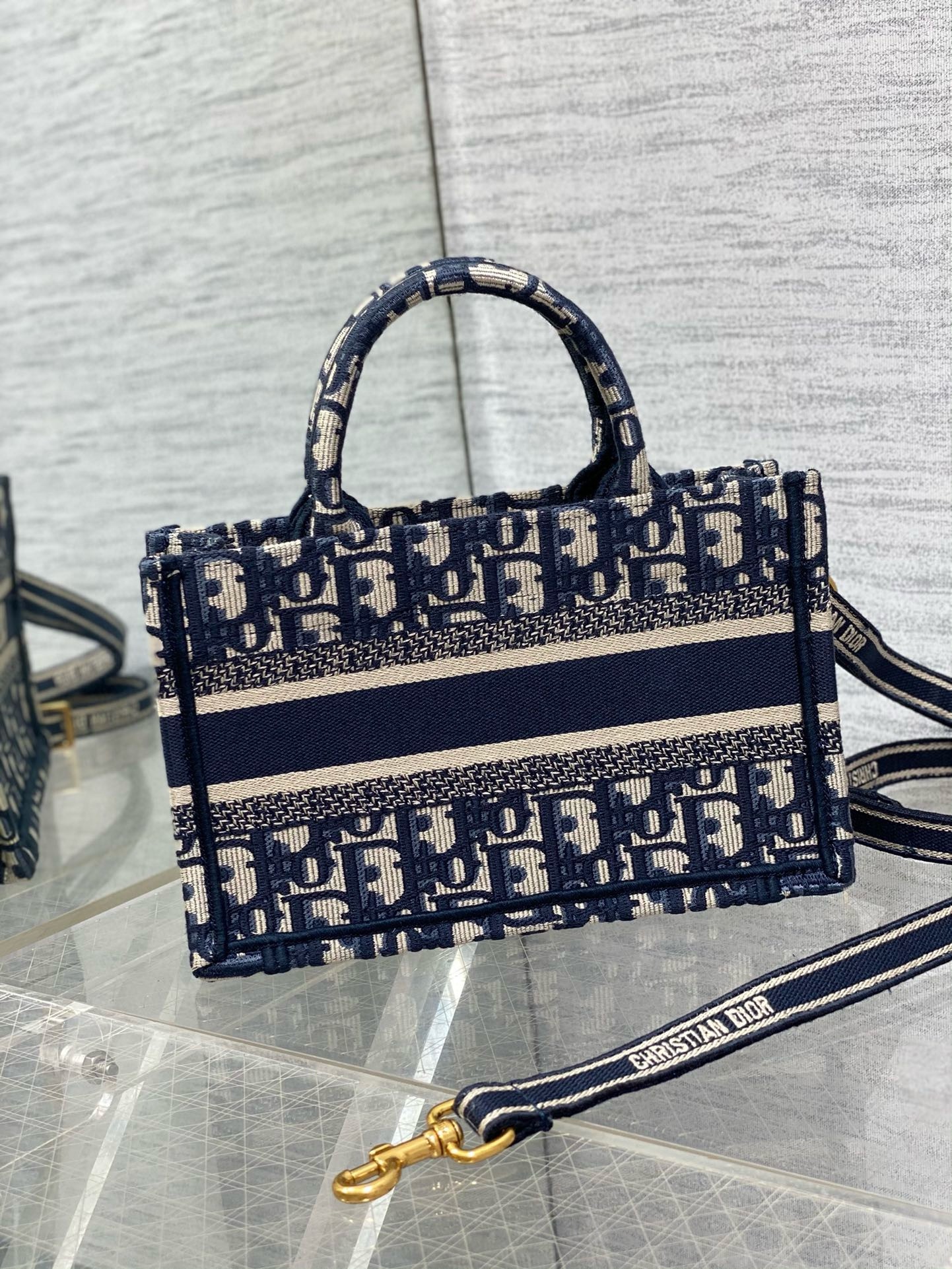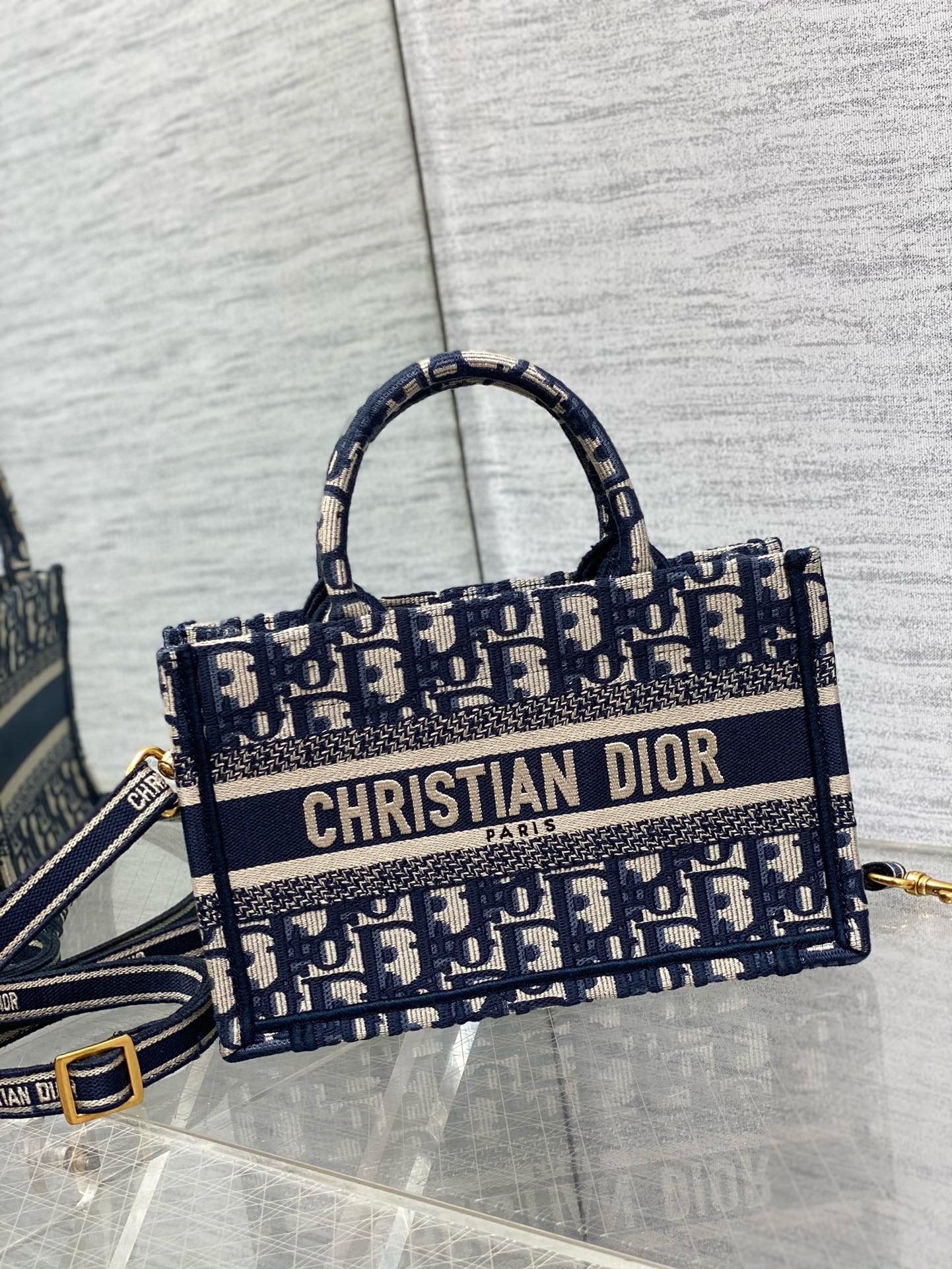 New for the Cruise 2024 collection designed by Maria Grazia Chiuri, the miniature tote elevates the iconic Dior Book Tote line. Fully embroidered with the House’s hallmark blue and beige Dior Oblique motif, it showcases the Christian Dior Paris signature. Embodying Dior’s savoir-faire, the Dior Book Tote is equipped with an adjustable and removable strap that allows it to be carried by hand, worn over the shoulder or crossbody.