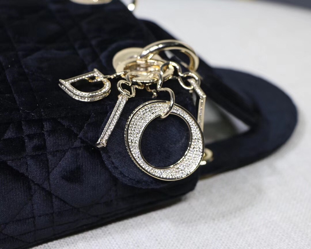 Dior finally launches the Lady Dior Bag in Velvet, but you wouldn’t notice a thing if you don’t zoom-in to look clearer. And also, they introduce a new DIOR Charm (no, not the stiff DIOR charm). It’s the same original smooth version, but the letters are decorated with rhinestones in the center, which gives more attention because it shines.
