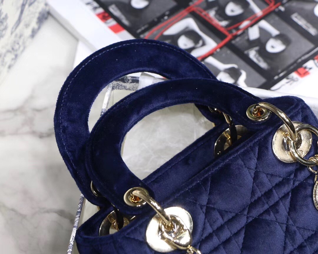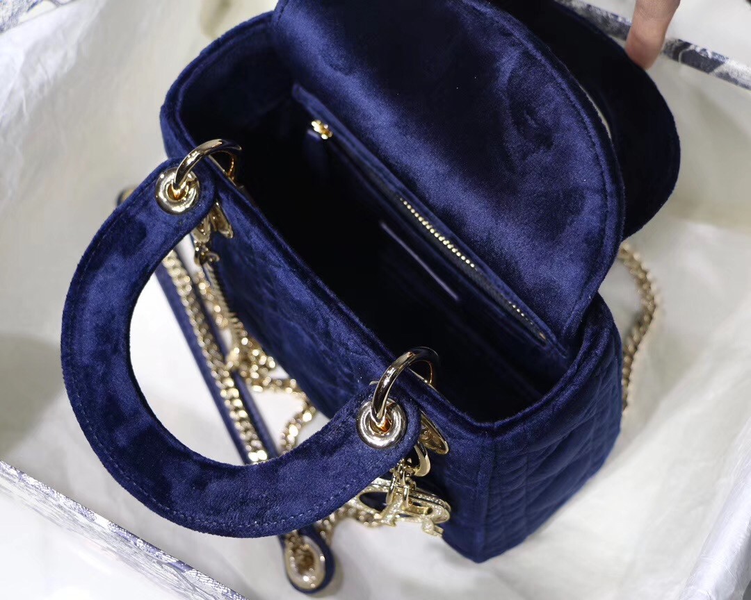 Dior Mini Lady Dior Chain Bag In Blue Velvet