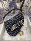 Maria Grazia Chiuri brings a fresh update to the iconic Saddle bag with an eye-catching design. This heritage style showcases the emblematic ‘D’-stirrup magnetic clasp and saddle flap with the signature ‘CD’ structure on both sides of the handle, giving it an instantly modern feel. Crafted in blue velvet that is embroidered with the Dior Oblique pattern in matte cotton thread for a contrasting effect, it is embellished with antique gold-finish hardware. This medium style may be customized with alternative straps.
