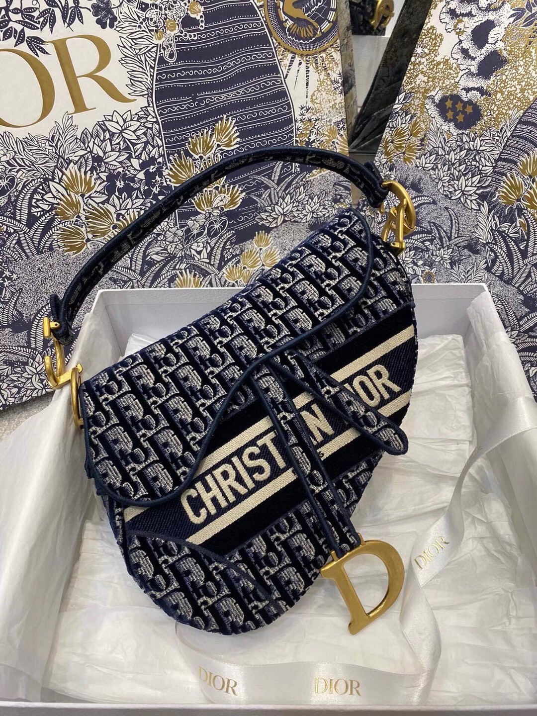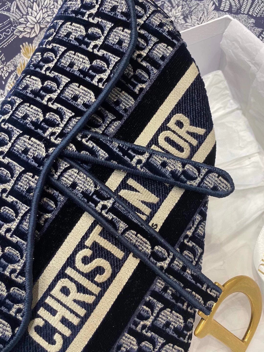 – Blue Dior Oblique Embroidered Velvet