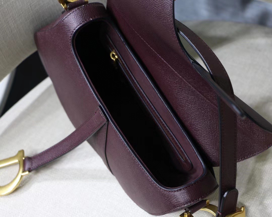 The iconic Saddle bag is reinvented once more by Maria Grazia Chiuri. Featuring a Saddle flap with a magnetic ‘D’ stirrup clasp, it boasts a ‘CD’ signature on each side of the handle. The grained calfskin style is embellished with antique gold-finish metal hardware. The Saddle bag may be carried by hand or worn over the shoulder and can be customized with different shoulder straps.