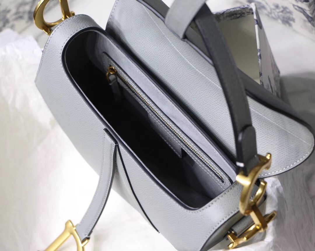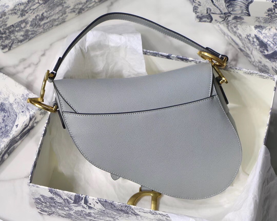 Maria Grazia Chiuri brings a fresh update to the iconic Saddle bag for an eye-catching design. This heritage style showcases the emblematic ‘D’-stirrup magnetic clasp and saddle flap with the signature ‘CD’ structure on both sides of the handle, giving it an instantly modern feel. Made with gray stone grain calfskin and antique gold hardware, this style may be customized with alternative straps.