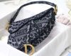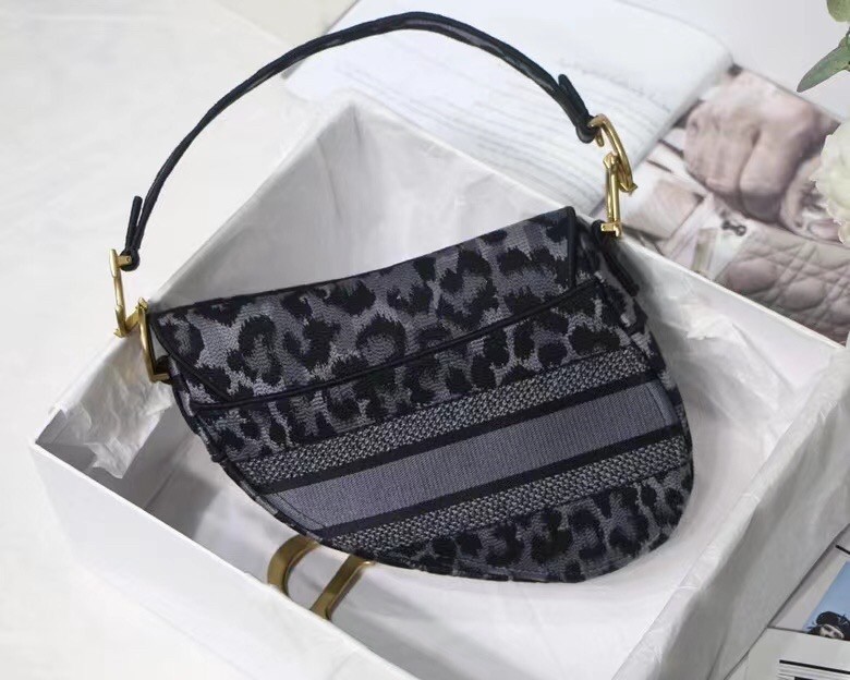Maria Grazia Chiuri brings a fresh update to the iconic Saddle bag. The design is fully embroidered with the Mizza motif, inspired by a leopard motif from the House archives. The legendary style features a Saddle flap with a magnetic ‘D’ stirrup clasp and boasts an antique gold-finish metal ‘CD’ signature on each side of the handle. The bag can be carried by hand or worn over the shoulder and may be customized with different shoulder straps.