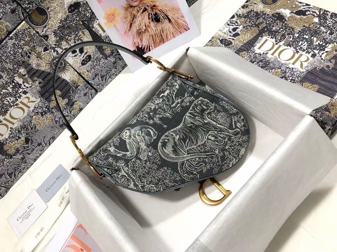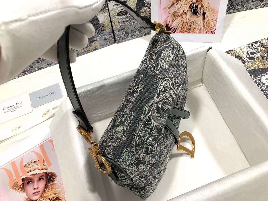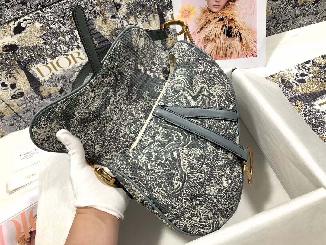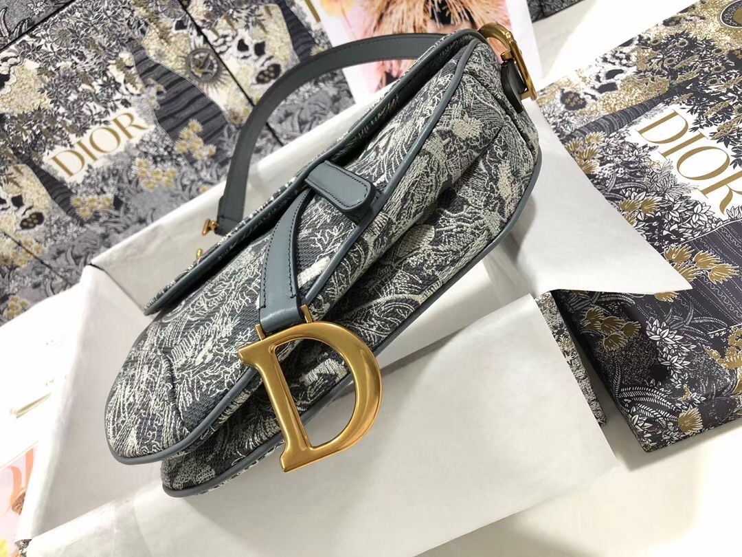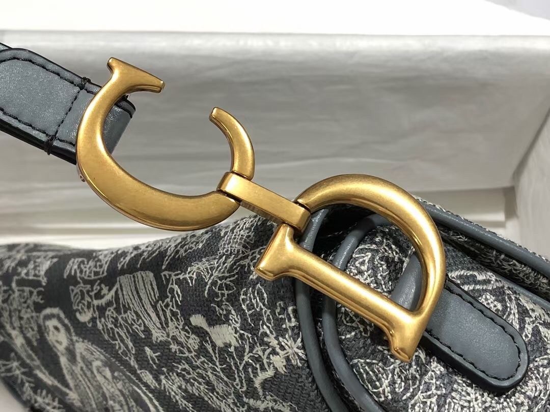 Dior Saddle Bag In Grey Toile de Jouy Reverse Jacquard