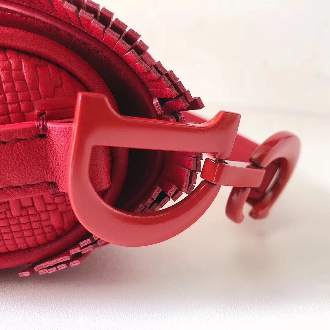 Dior Saddle Bag In Red Braided Leather Strips With Fringe