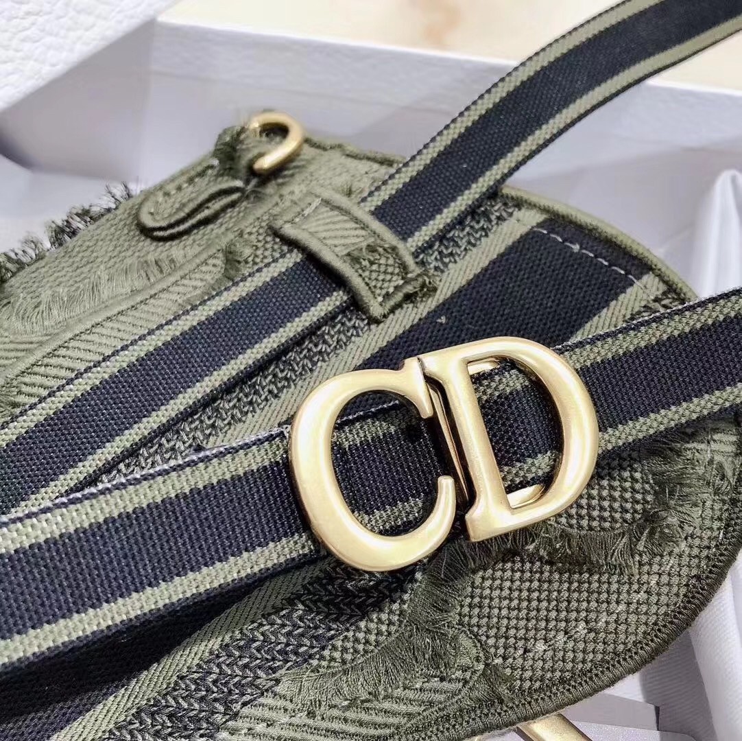 The Saddle pouch belt combines the signature Saddle style with the modern look of the camouflage pattern. Featuring a large interior compartment with a single patch pocket, this pouch can hold essentials like a wallet, lipstick, sunglasses, or keys. A “D” charm accent hangs from the flap, while a “CD” closure sits at the front of the belt. The piece can be worn as a belt, carried on the shoulder, crossbody, or as a clutch.