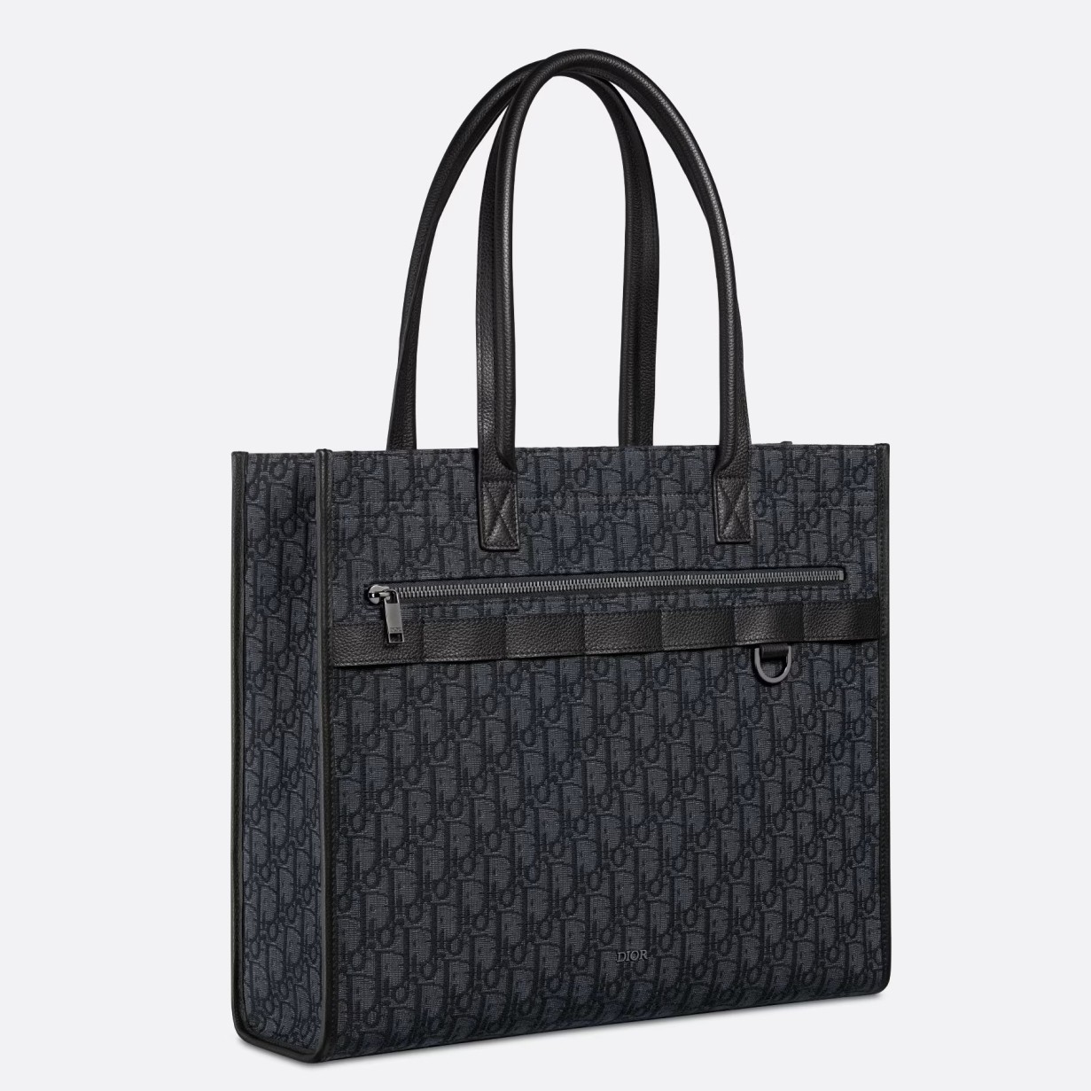 New for Fall 2023, the Safari tote bag is at once refined and practical. Crafted in Dior Oblique jacquard, the design is enhanced by tonal grained calfskin accents and a Dior signature on the front. The generous compartment and front zipped pocket will accommodate the essentials, while the leather strap and D-ring allow accessories or a case for AirPods Pro to be attached. Completed by leather top handles, the tote bag can be carried by hand or worn over the shoulder.