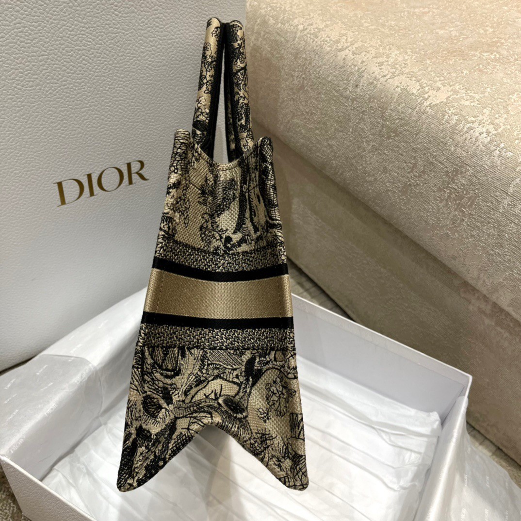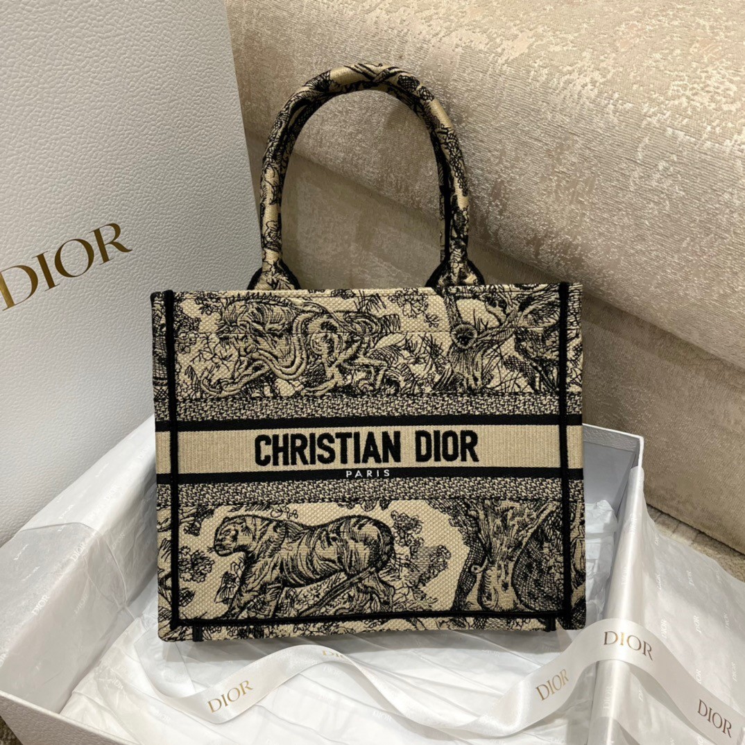 Introduced by Maria Grazia Chiuri, Dior’s Creative Director, the Dior Book Tote has become a staple of the Dior aesthetic. Designed to hold all the daily essentials, the style is fully embroidered with the brown Toile de Jouy motif and is adorned with the ‘CHRISTIAN DIOR PARIS’ signature on the front. The small tote exemplifies the House’s signature savoir-faire and may be carried by hand or worn over the shoulder.
