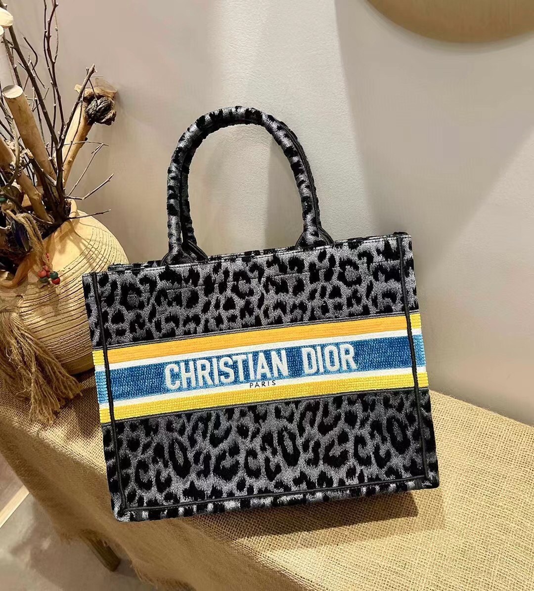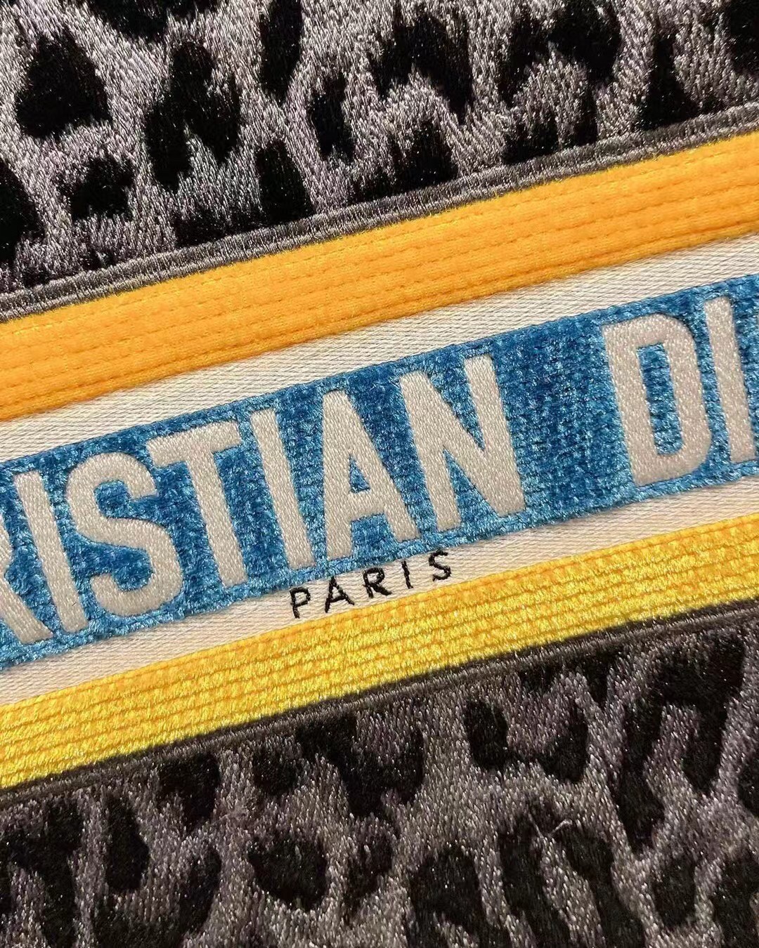 The Dior Book Tote is an original creation introduced by Maria Grazia Chiuri, Dior’s Creative Director, and has become a staple of the Dior aesthetic. Designed to hold all the daily essentials, the style is embroidered with the Mizza motif, inspired by a leopard motif from the House archives, in matte cotton thread, accentuating the velvet’s silky effect. Adorned with the three-tone ‘CHRISTIAN DIOR’ signature on the front, the small tote exemplifies the House’s signature savoir-faire and may be carried by hand or worn over the shoulder.