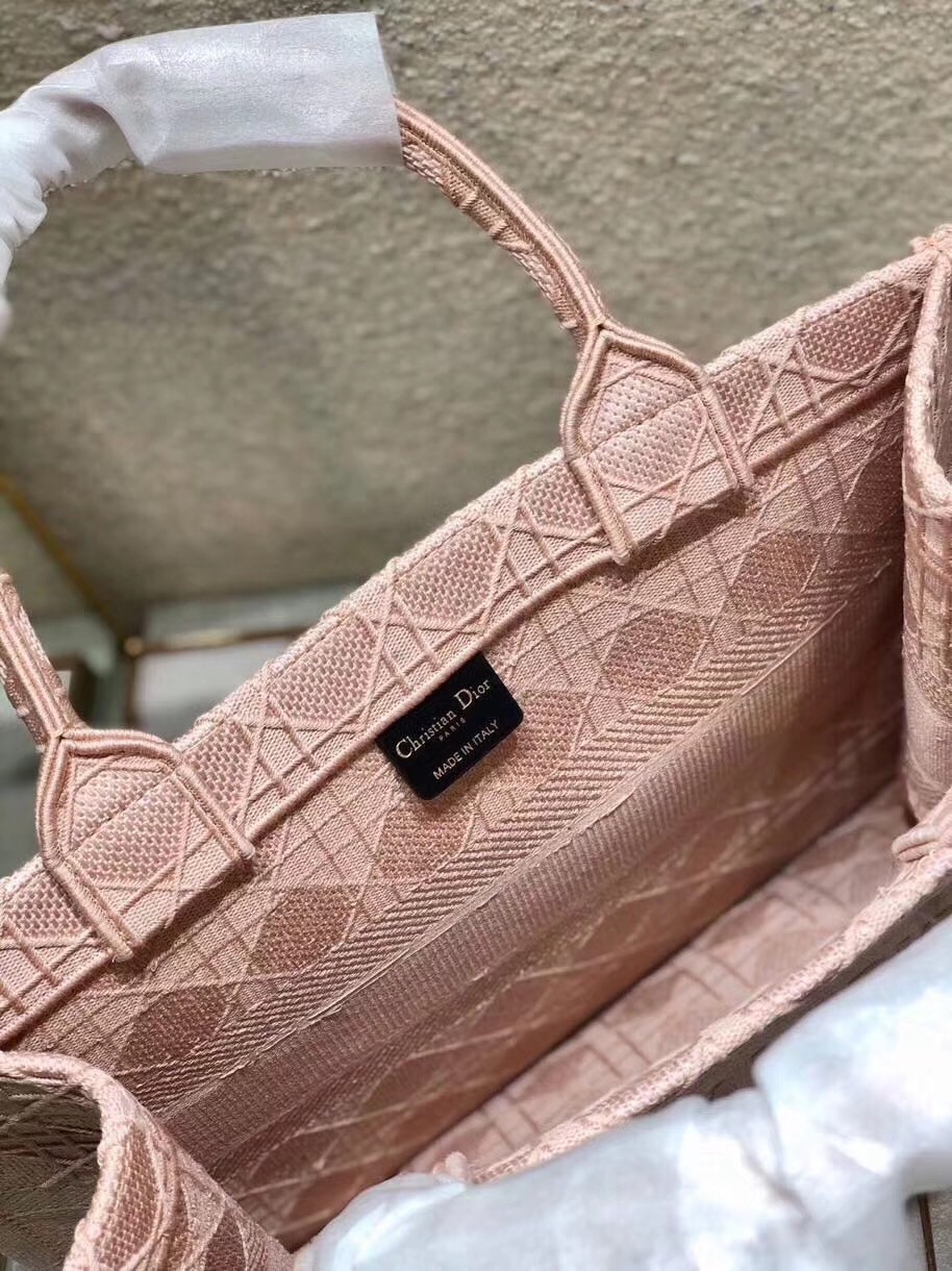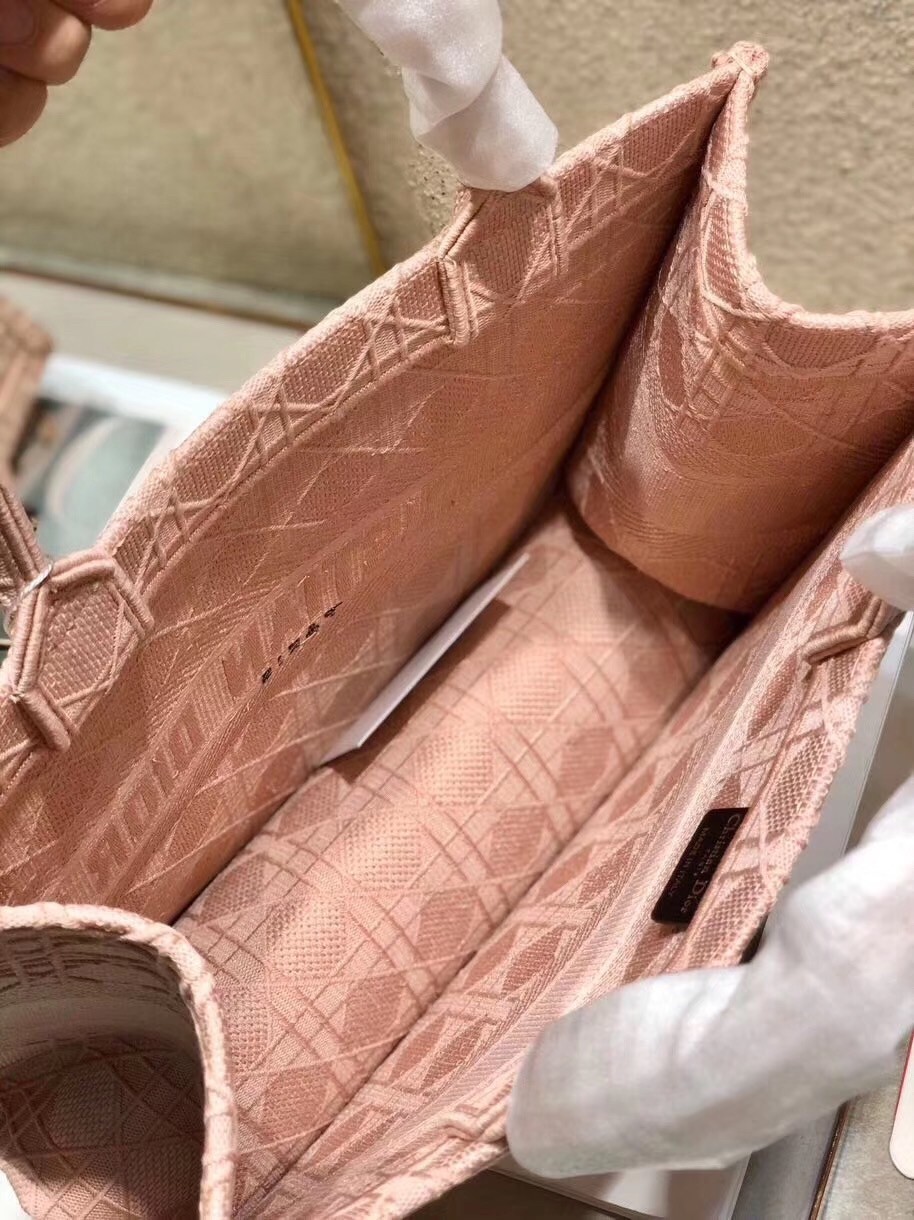 The Dior Book Tote, an original style introduced by Dior’s Creative Director Maria Grazia Chiuri, has become a staple of the Dior aesthetic. Ideally designed to carry all your daily essentials, the small shape portrays a fully embroidered pink Cannage pattern and boasts a ‘Christian Dior’ signature to the front. This carryall is a perfect example of the Dior savoir-faire and combines well with small accessories like the Mitzah scarf.