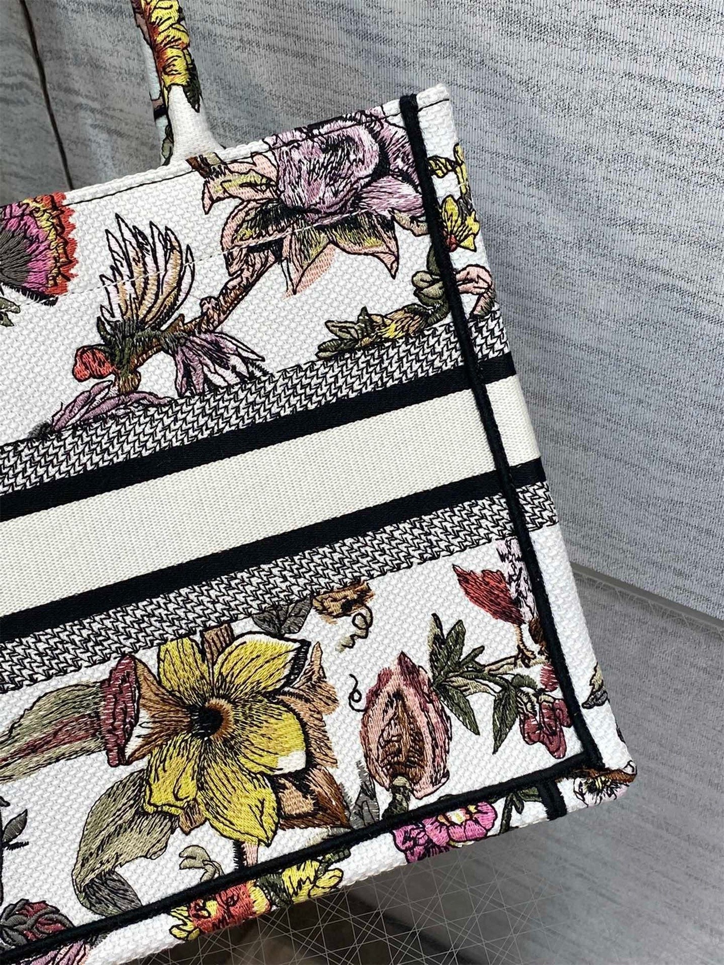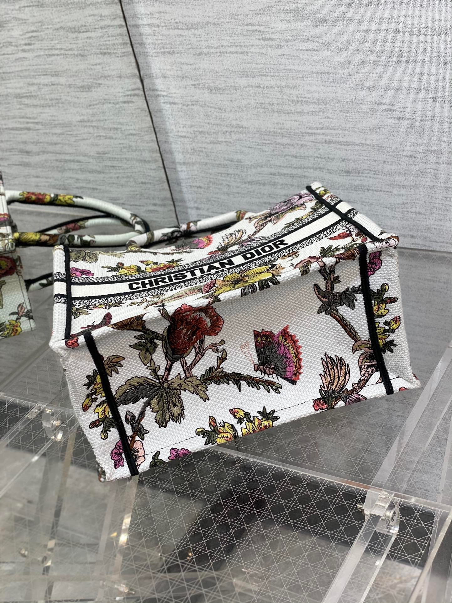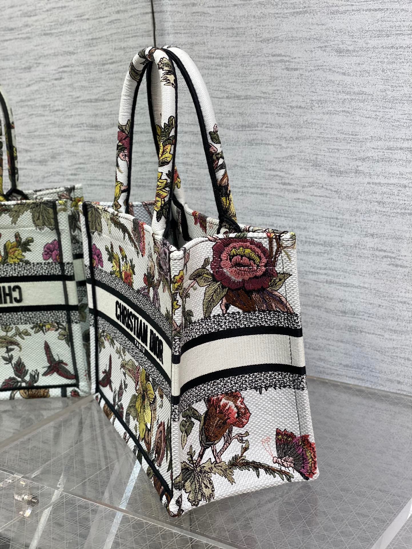 Dior Small Book Tote Bag In White Multicolor Jardin Botanique Embroidery