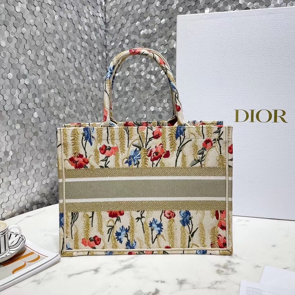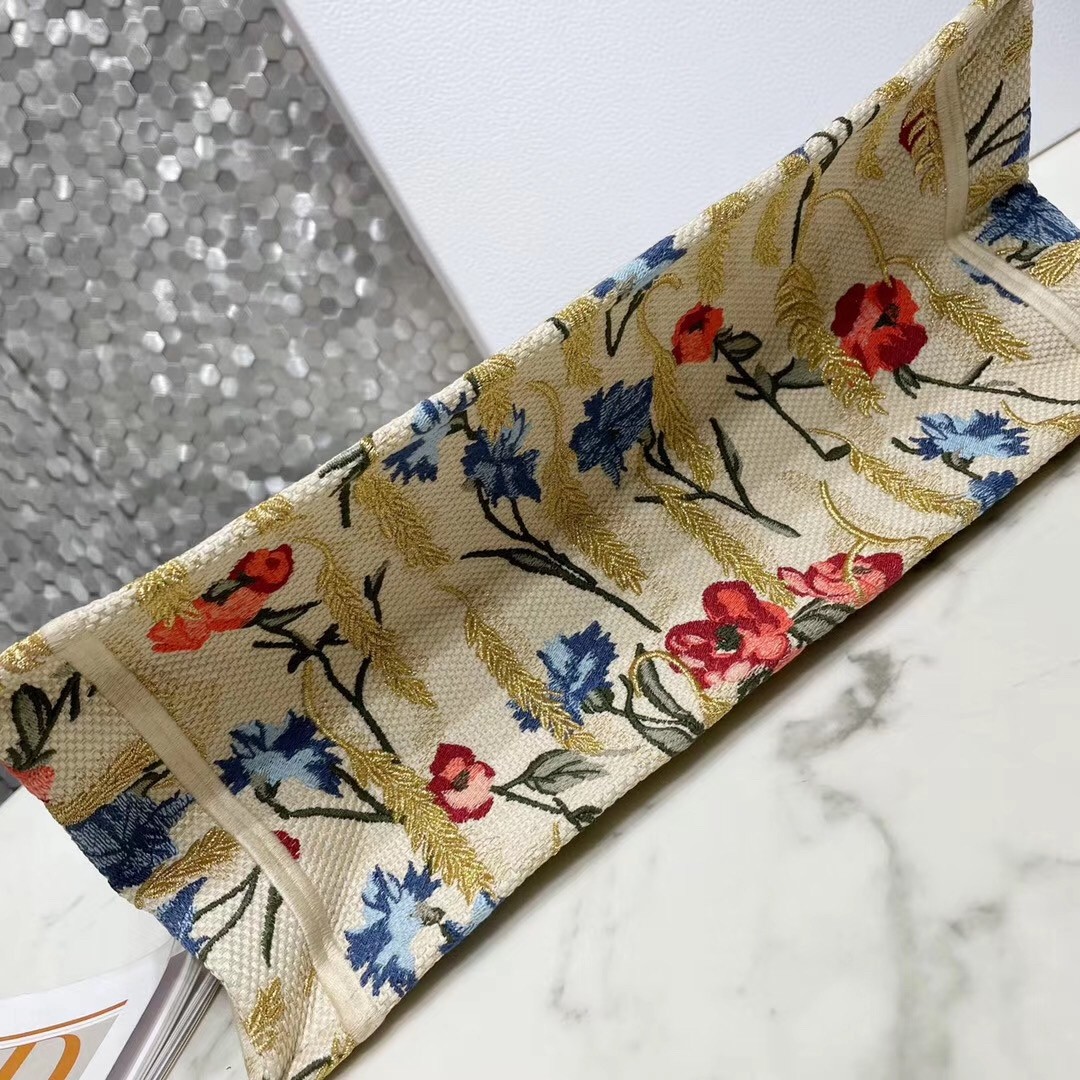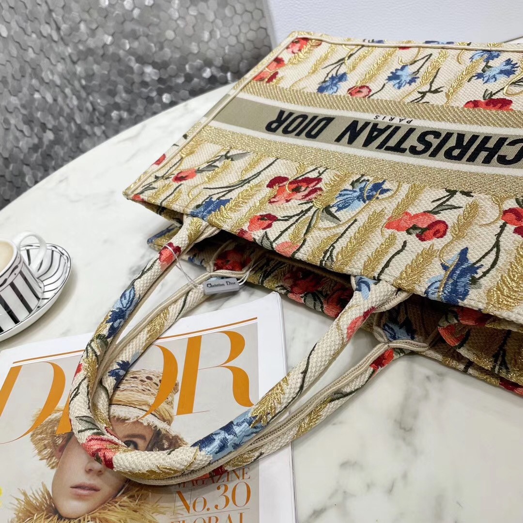 The Dior Book Tote, an original style introduced by Creative Director Maria Grazia Chiuri, has become a staple of the Dior aesthetic. This small beige style, fully embroidered with the multicolor Dior Hibiscus motif accented with metallic thread, is reminiscent of bucolic Apulian landscapes, a central theme of the collection. Adorned with the ‘Christian Dior’ signature, the Dior Book Tote exemplifies the House’s signature savoir-faire and can be paired with other Dior Hibiscus creations from the collection.