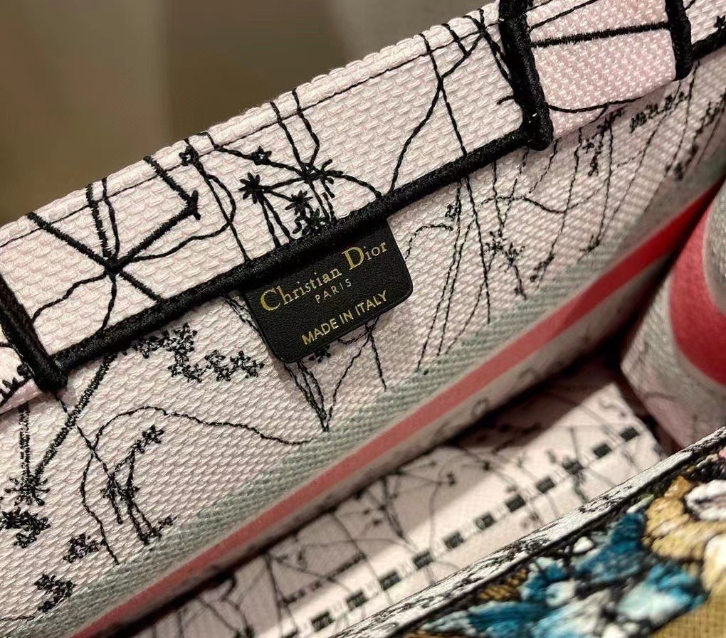 The Dior Book Tote is an original creation introduced by Maria Grazia Chiuri, Dior’s Creative Director, and has become a staple of the Dior aesthetic. The style is fully embroidered with the multicolor Dior Constellation motif, imagined by artist Pietro Ruffo as a tribute to Mr. Dior’s fascination with the divinatory arts. Adorned with the ‘CHRISTIAN DIOR’ signature on the front, the small tote exemplifies the House’s signature savoir-faire and may be carried by hand or worn over the shoulder.