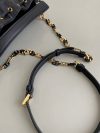 – Adjustable CD link chain in antique gold-finish metal with resin pearls and a leather insert