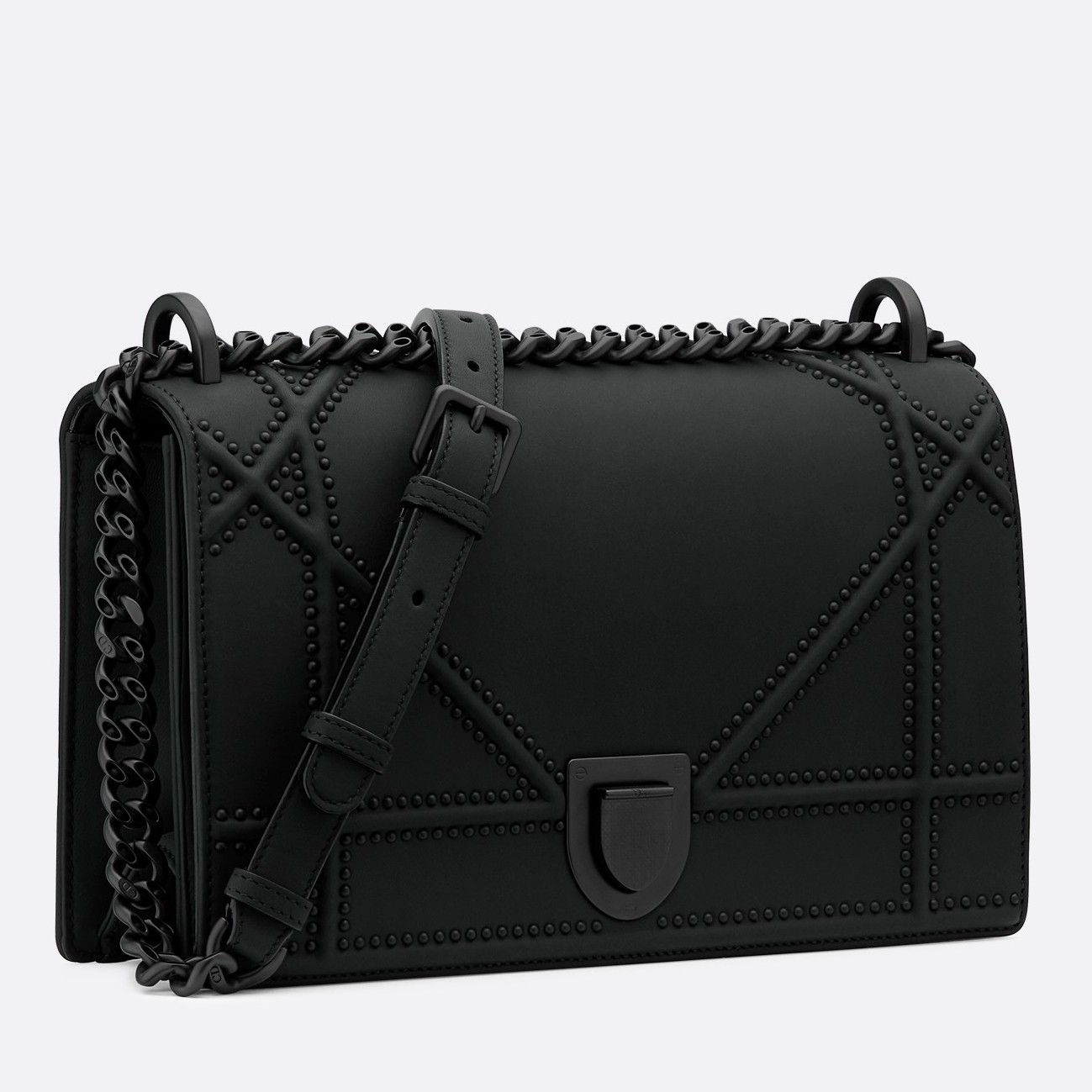 What’s evenly obsessive as Lady Dior So Black Bag? The Diorama So Black Bag of course! Splendid huh? It comes with a chain strap for slinging on the shoulder or cross body carrying. The signature crest-shaped clasp is the symbol of the line, built on the front flap and it’s in lined with the archicannage motif. It’s also refined with studs for the urban chic’ness.