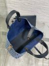 The Dior Toujours bag is distinguished by a casual and practical design. Crafted in blue Denim Dior Oblique jacquard, revisiting the House’s iconic motif in a modern, irregular stonewashed effect, the model showcases a spacious interior compartment with a matching pouch to organize the essentials. Its thin leather strap closure keeps items secure while the D of the CD Lock clasp twists to adjust the sides and enhance the bag’s silhouette. The leather handles can be adjusted using the small notches so the medium bag can be carried by hand or worn over the shoulder.