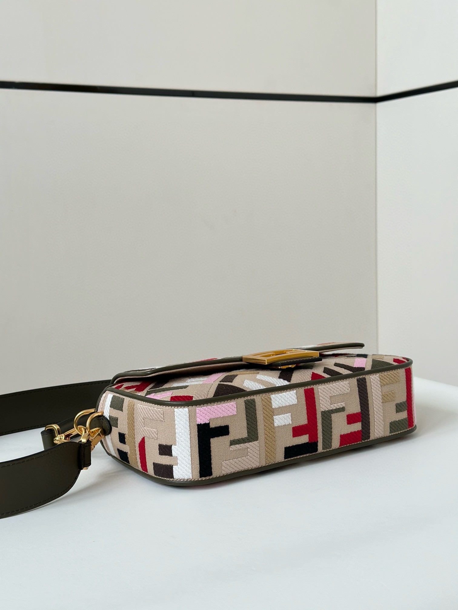 Fendi Baguette Medium Bag in Canvas with Multicolor FF Embroidery