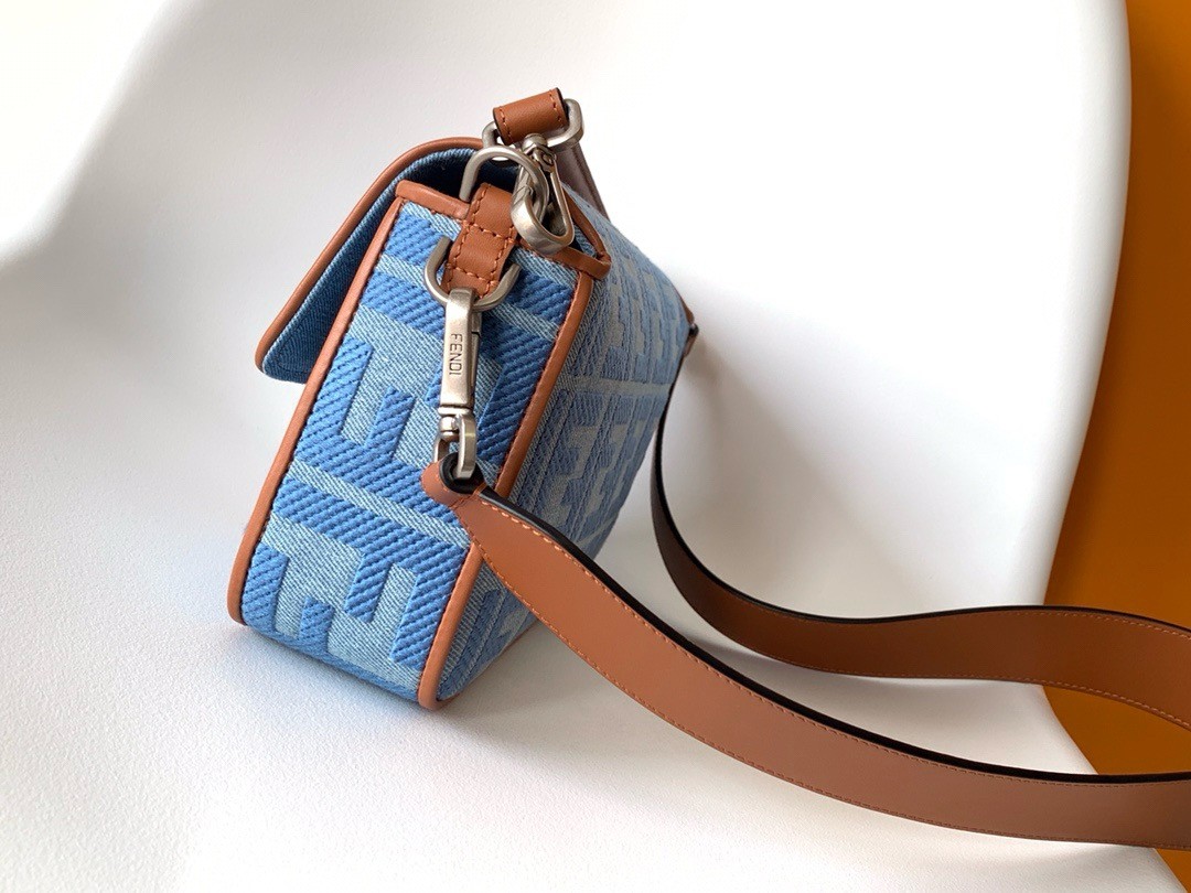 Fendi Baguette Medium Bag in Denim with FF Embroidery