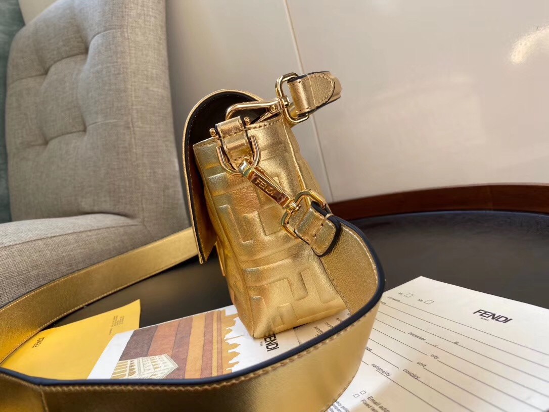 Fendi Baguette Medium Bag In Gold Lambskin With FF Motif