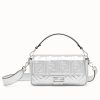 Fendi Baguette Medium Bag In Silver Lambskin With FF Motif