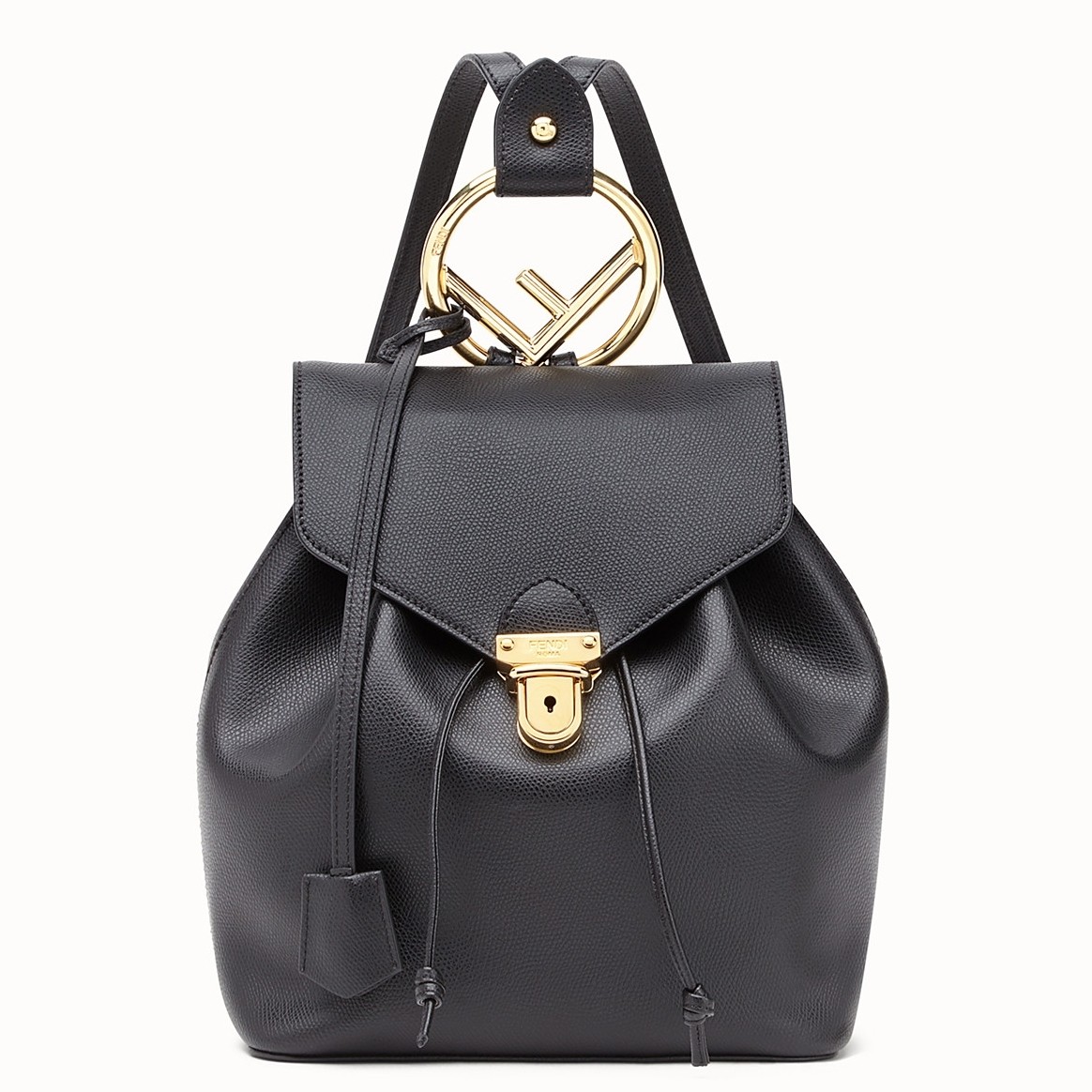 Launched in 1925, Fendi is revered for its striking motifs and use of luxurious materials and Italian craftsmanship. This leather backpack is complemented with a large metal logo and matching gold-toned trims, finished with a padlock closure and hanging key charm.