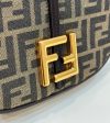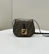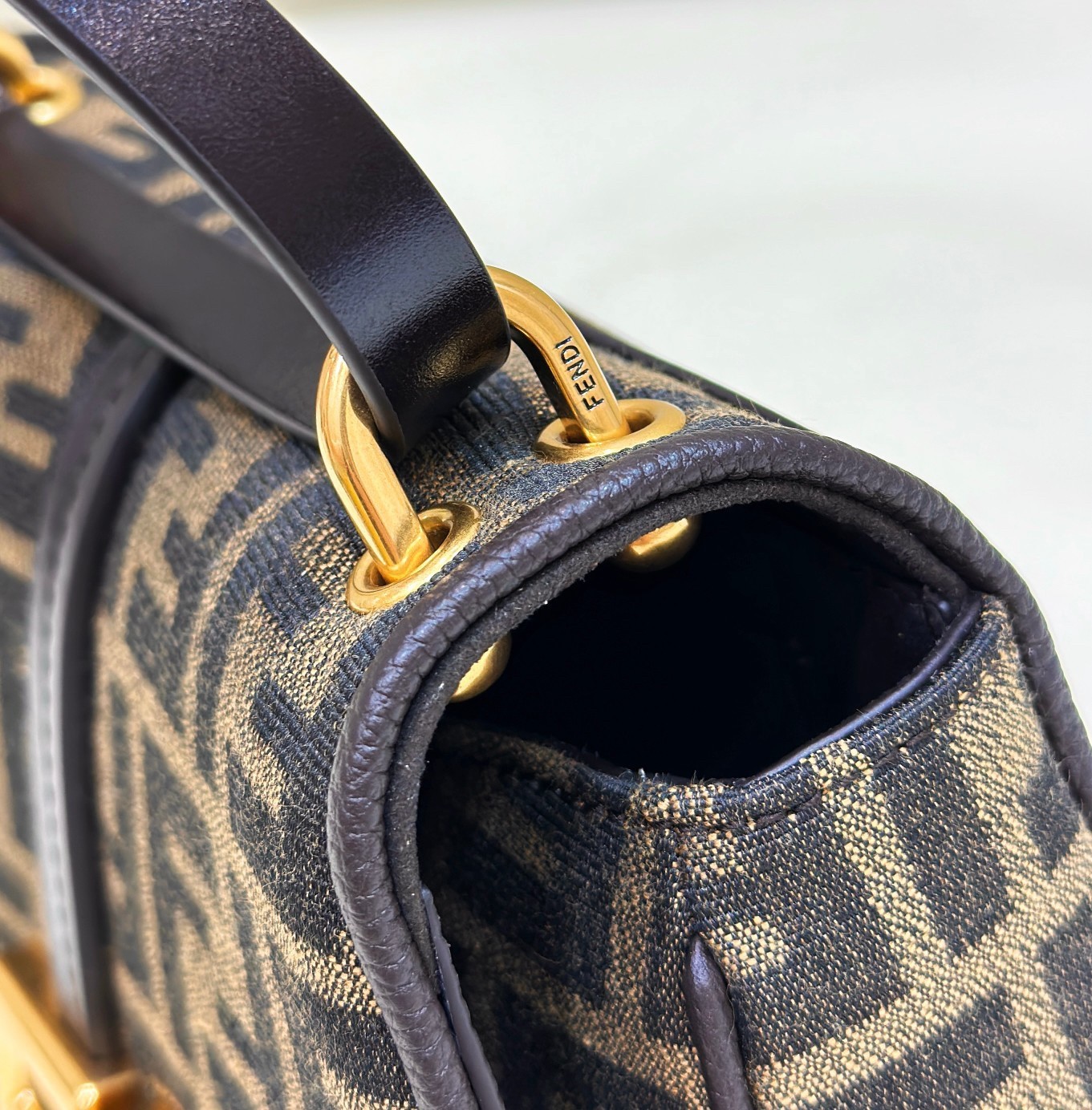 The Fendi C’mon is a satchel-style shoulder bag with feminine, curved lines. It oozes the same elegant simplicity felt throughout the collection and is described as a versatile ode to pure sophistication. This small style is beautifully crafted with FF jacquard fabric. Timeless with a powerful identity, the FENDI C’mon smoothly transitions from day to night thanks to its sleek aesthetic and versatile appeal.