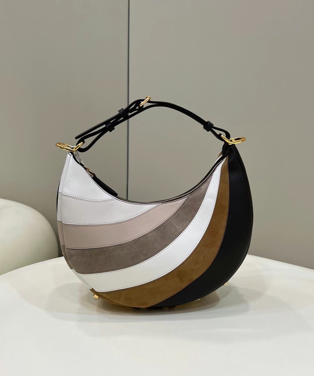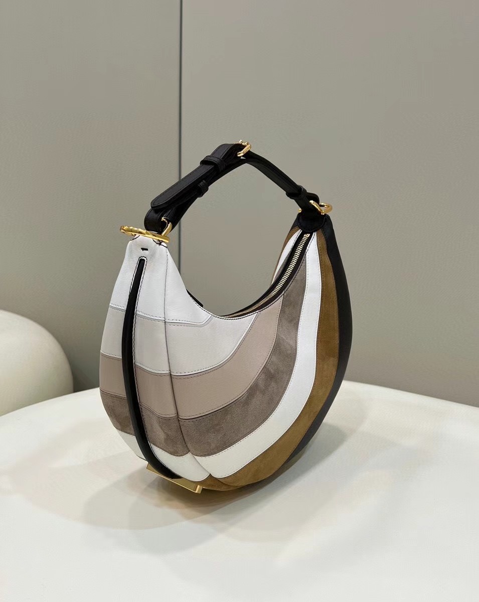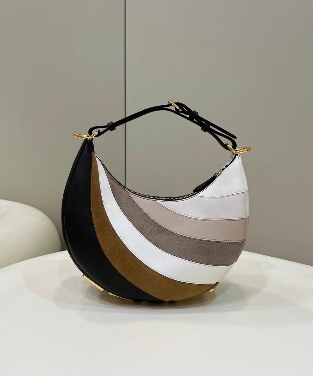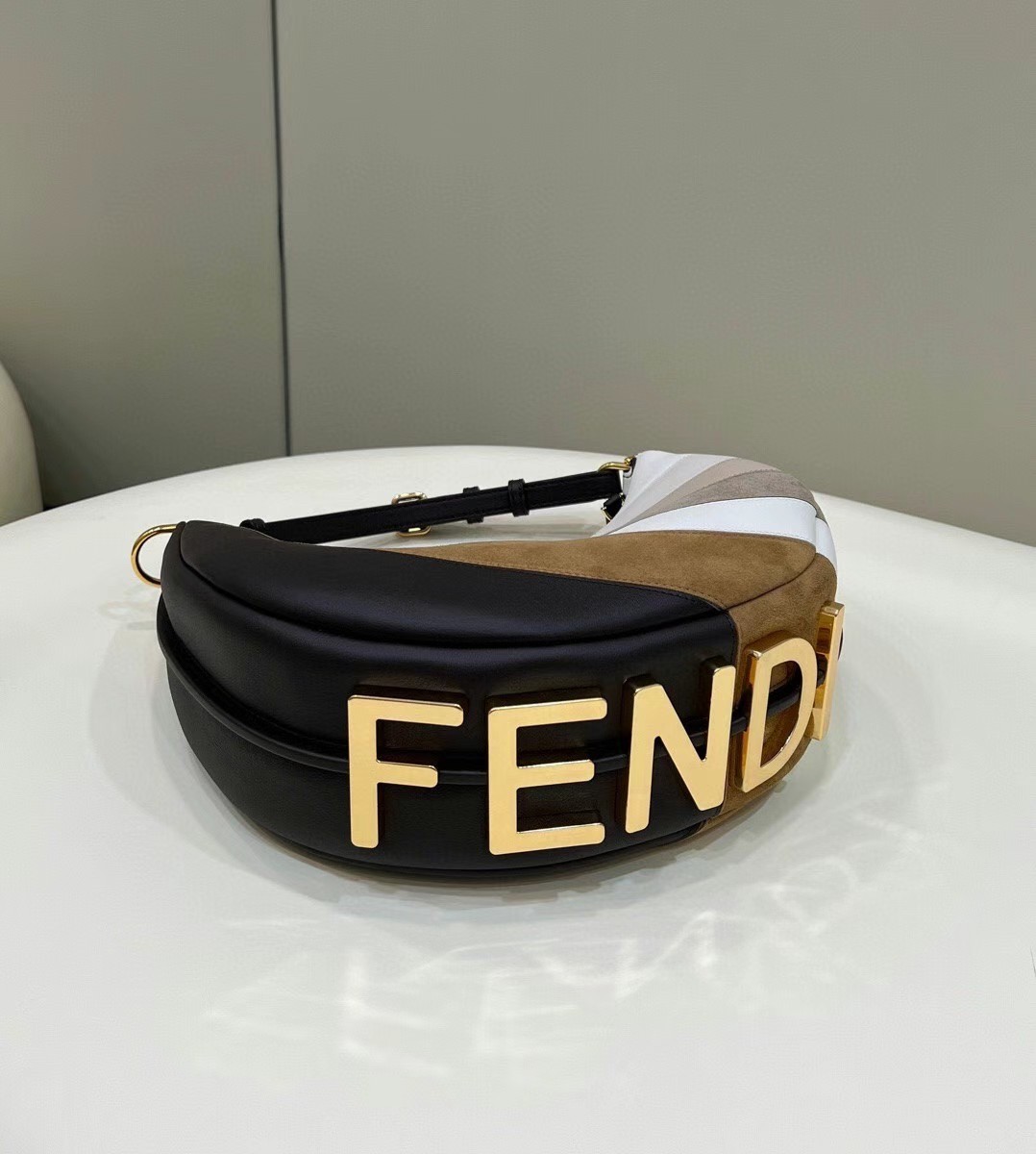 Revealed on brand’s Spring/Summer 2022 runway, the Fendigraphy Bag is Fendi’s take on the timeless hobo silhouette and the fashion crowd is already obsessed! Defined by a crescent shape with a spacious carry-all design, the Fendigraphy bag is a modern and bold icon ?C the new must-have for the powerful and confident Fendi woman. Once worn, the bag will stun with its maxi Fendi golden metal script, leaving the iconicity of the Maison’s logo on display for everyone to see. Wearability being so dear to Fendi, the bag fits perfectly under the arm thanks to its circular armhole. Its removable and adjustable strap allows you to transform it into a soft and supple satchel bag with a functional crossbody attitude if paired with a Strap You.