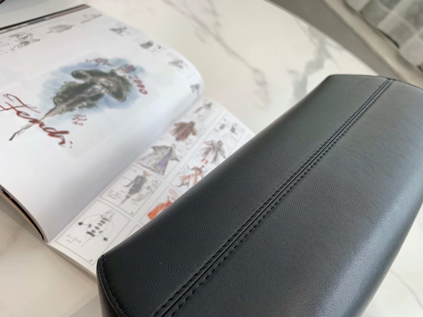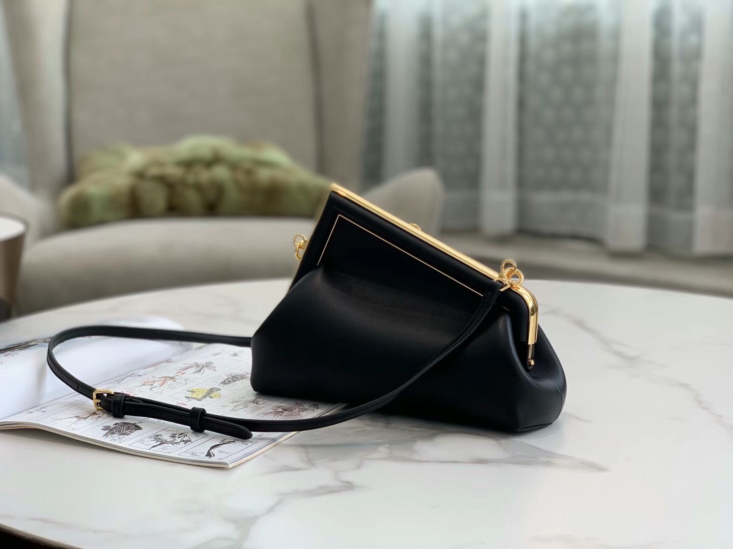 Kim Jones introduces the First bag, a soft clutch silhouette with the iconic ??F?? logo incorporated into its fastening. This bag made of soft nappa leather with oversized metal F clasp bound with tone on tone nappa leather. You can style the First by hand as a clutch or worn on the shoulder thanks to the detachable shoulder strap.