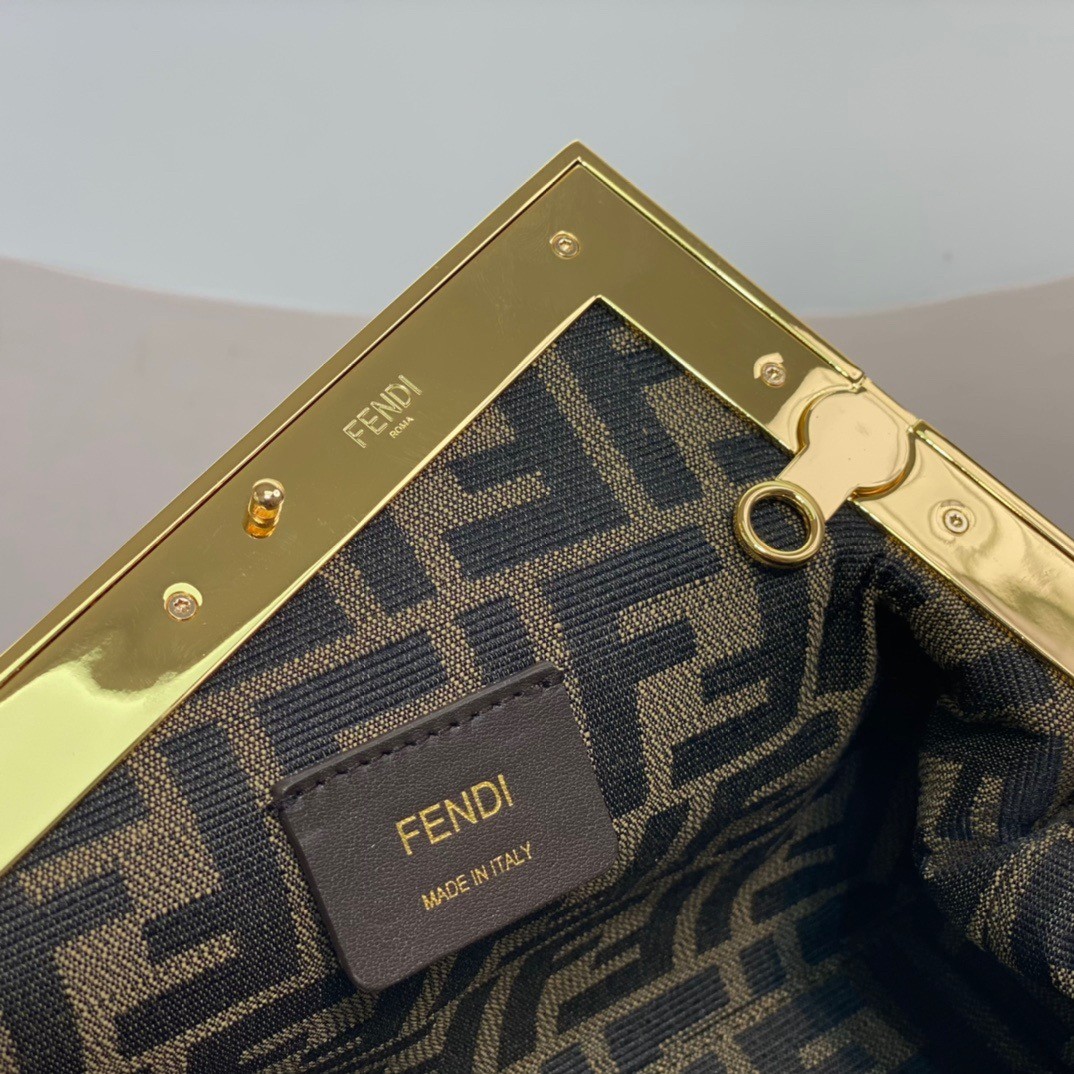 – Oversized metal F clasp bound with tone on tone nappa leather