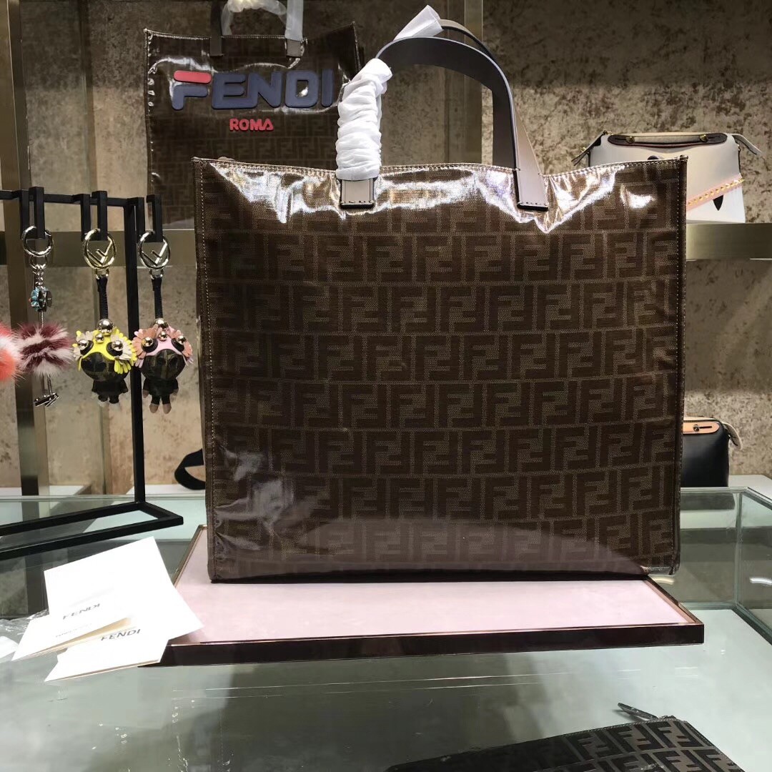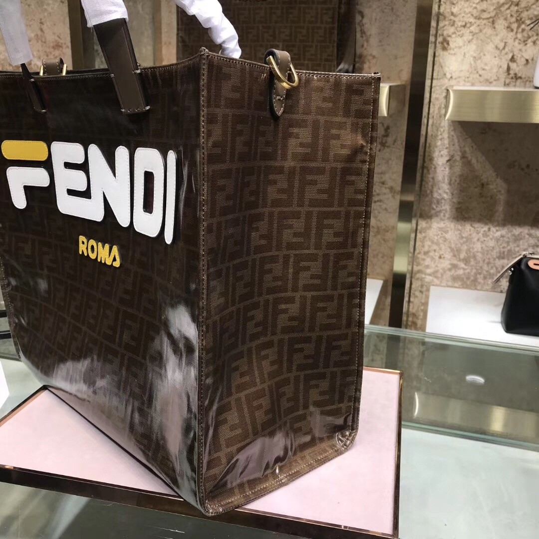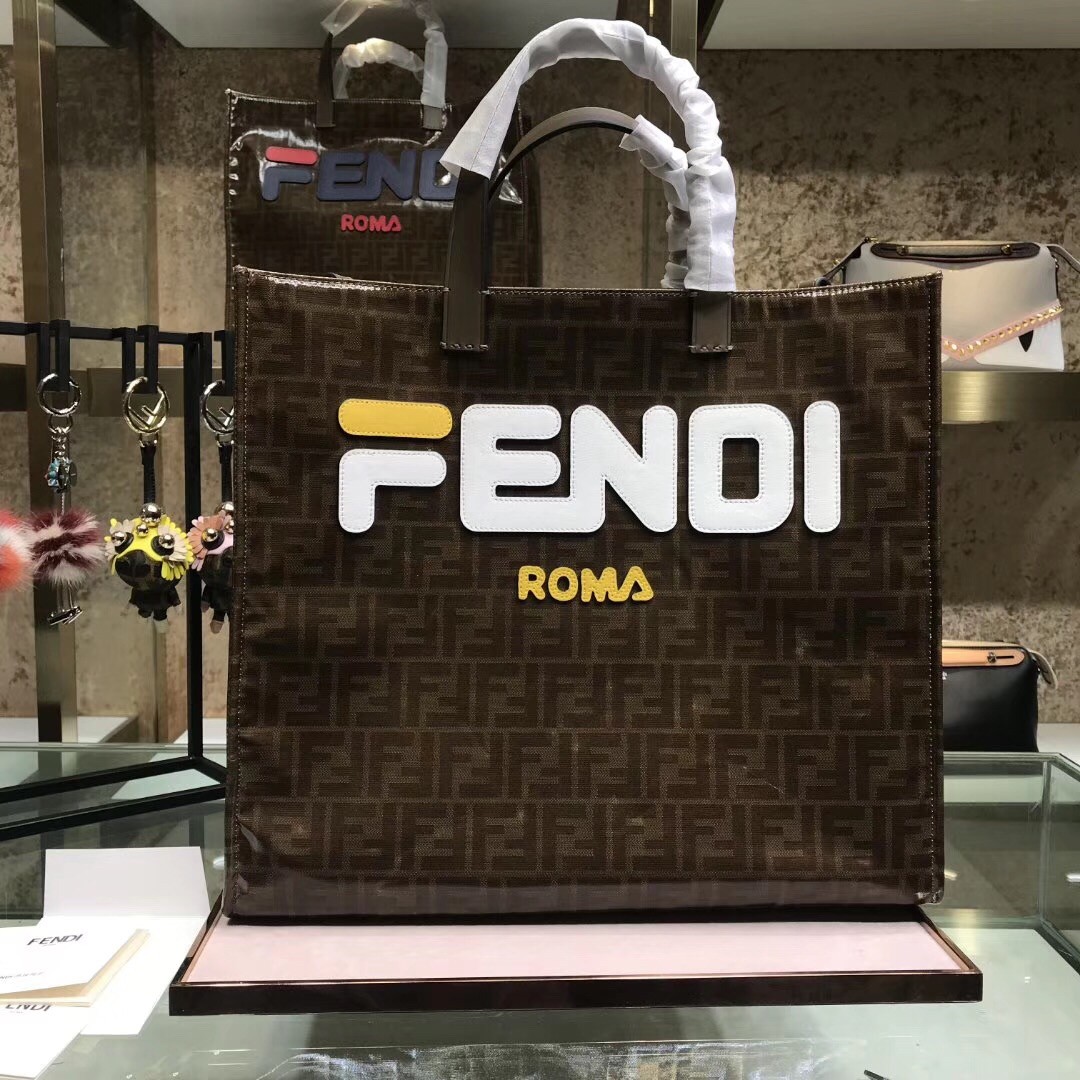 Fendi Glazed Multicolor Fabric Shopper White Logo Bag
