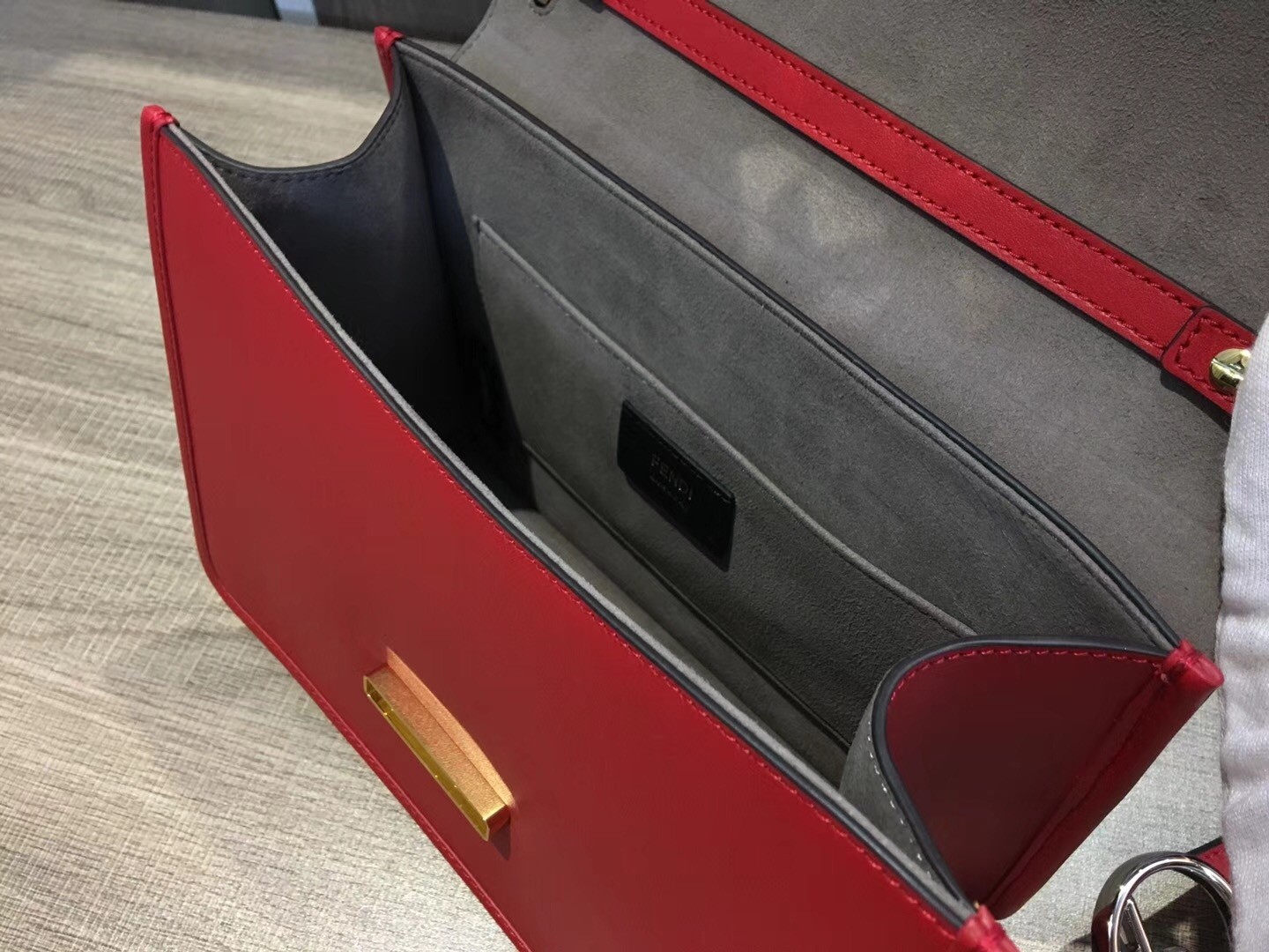 We love Fendi’s new graphic slanted ‘F’ logo ?C it first debuted on the Fall ’17 runway. This ‘Kan I’ bag is made from smooth Italian leather and punctuated with glossy silver and gold hardware. It opens to a spacious suede-lined interior with plenty of room for your daily essentials, like a wallet, keys and cell phone.
