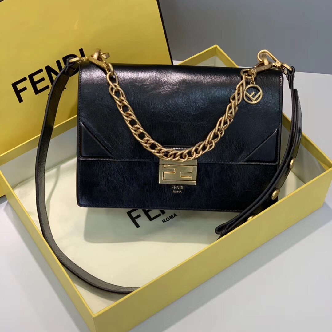 After successfully launching the Kan I Bag, Fendi went back to the drawing board to design the kan U Bag for the Prefall 2019 Collection. The Kan U comes with a squared-shaped flap designed with triangle detailing on the sides. The chain looks much more sophisticated and chic’er, it also comes with the reversed F charm. This chain comes in two forms; both are detachable. One is short chain and another is a long chain for two way of carrying.