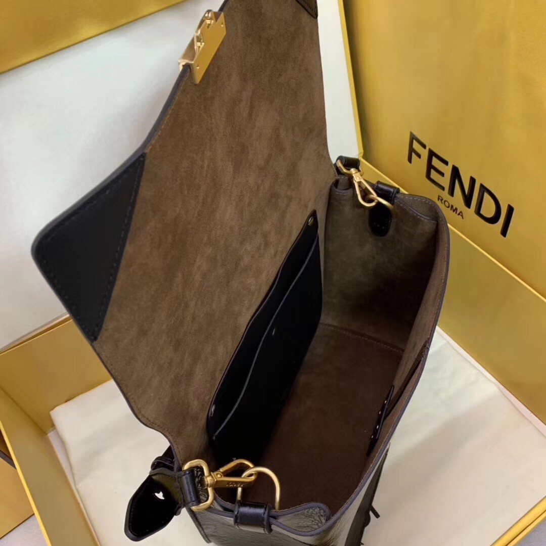 After successfully launching the Kan I Bag, Fendi went back to the drawing board to design the kan U Bag for the Prefall 2019 Collection. The Kan U comes with a squared-shaped flap designed with triangle detailing on the sides. Can be worn cross-body or carried by hand thanks to the shoulder strap detached by buttons.