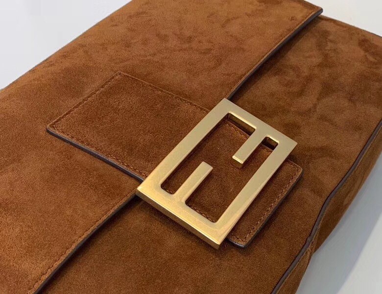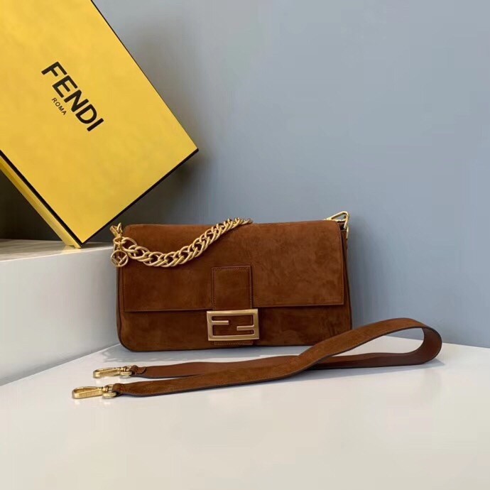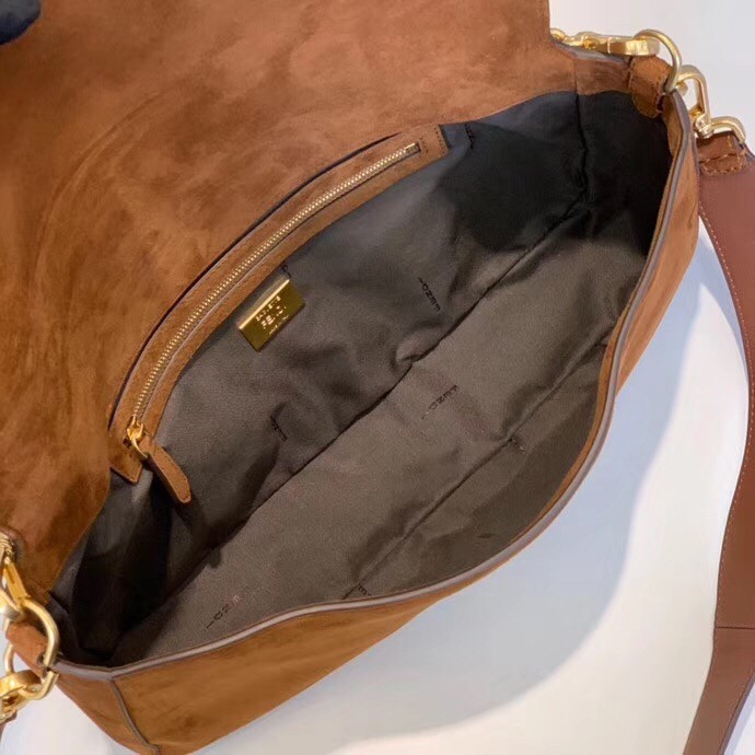 Fendi Medium Baguette Bag In Brown Suede Leather