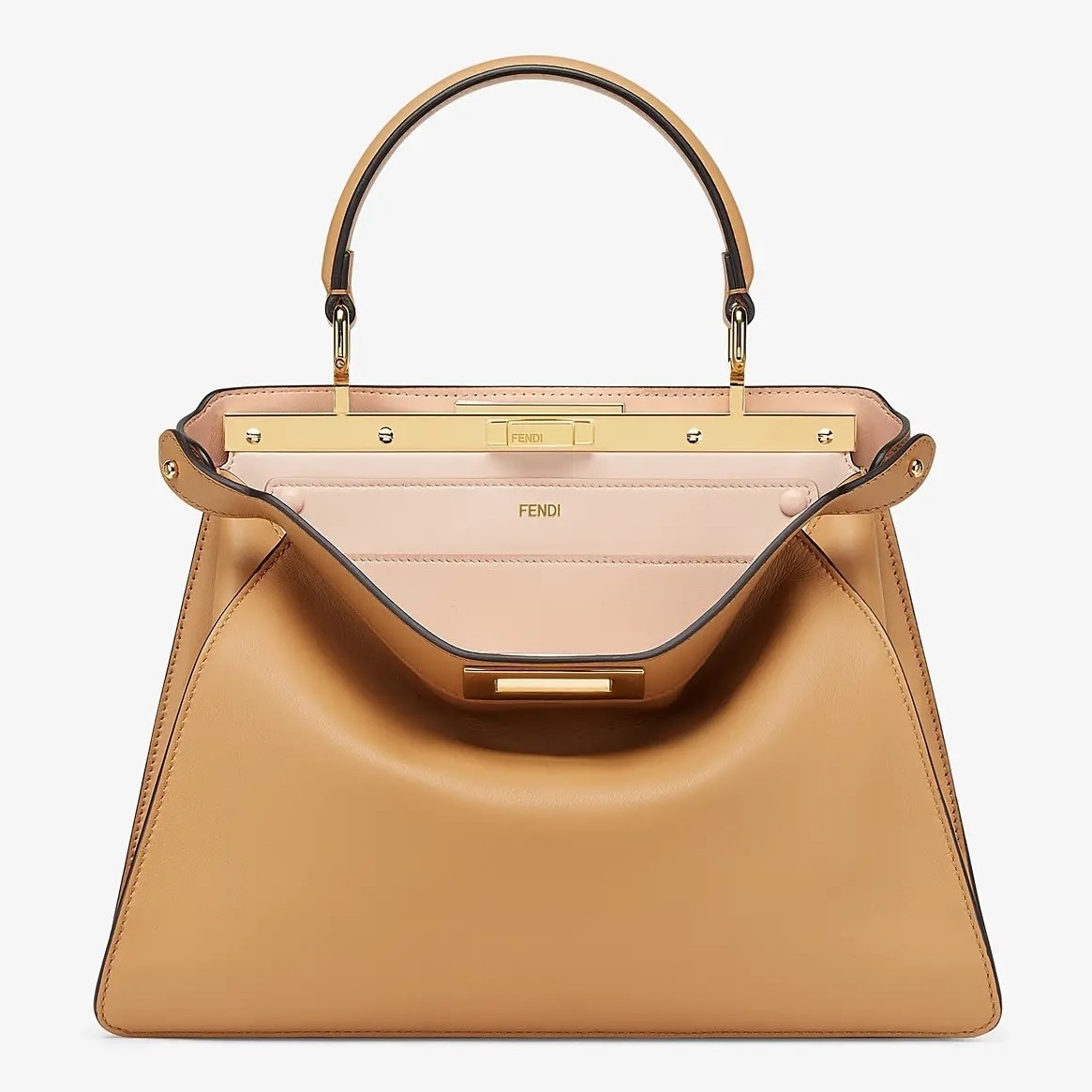 Presented on the occasion of the Fall/Winter 2020 Fashion Show, the new Peekaboo I see U bag reinterprets the concept that has always defined the distinctive nature of Peekaboo bags: the surprise detail hidden inside. The new Peekaboo I see U features a contrasting interior, fully lined in extremely soft powder pink nappa leather, and a removable, interchangeable pocket that can be personalised.