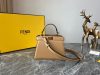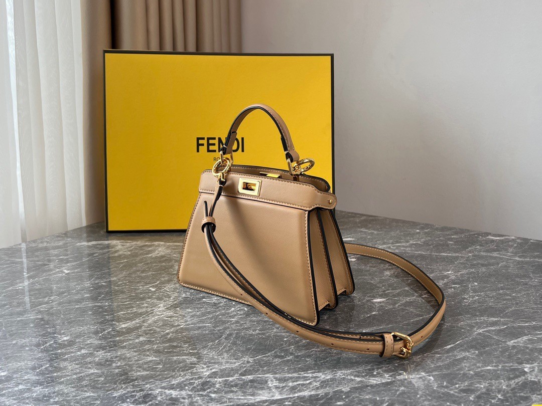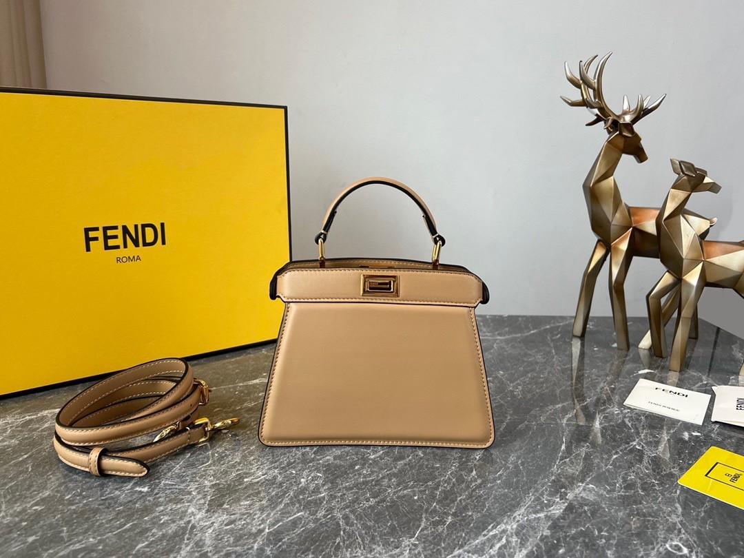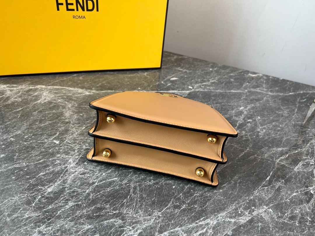 Introducing the Fendi Peekaboo Petite, a smaller version of the beloved bag that features pared-down proportions while retaining the playful and beautiful nature of the design. The Peekaboo is defined by its clean and minimal lines, trapeze shape, and overall cool attitude, and this new size retains all the elements of the bag we love with a contemporary flair. This version is intended to be worn crossbody, but the strap can be removed or changed to give the design a new look.