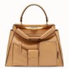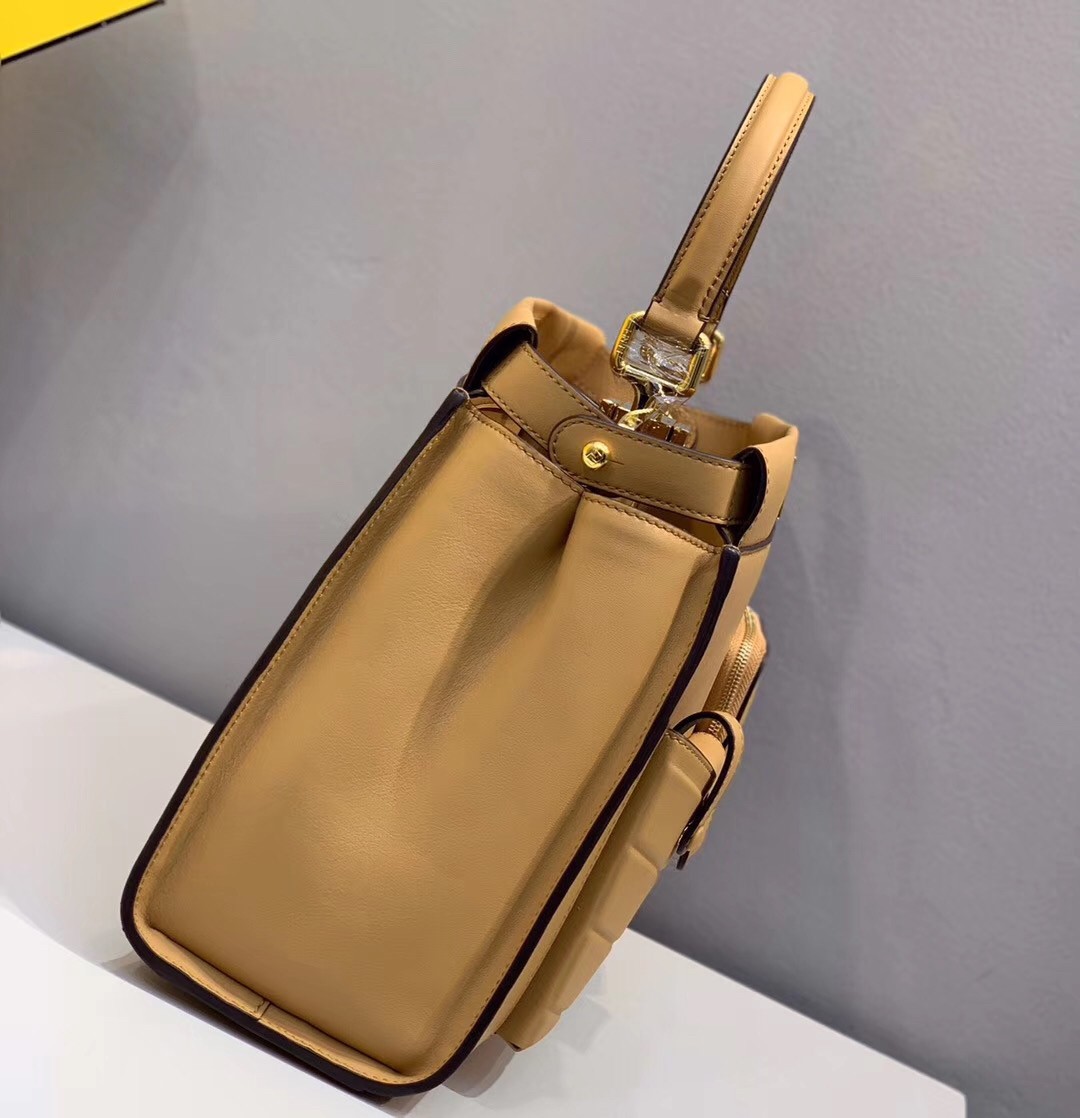 t’s true; the Fendi Peekaboo Pocket Bag is the casual chic for the normal days. The pockets that are crafted around the exterior are very useful but the minimalistic look has been sacrificed. The shape as well as the interior remained unchanged. The front of the bag is decorated with 3 exterior pockets of different sizes that can hold your phone as well. There is also a zip pocket for storing more important stuff. With this Peekaboo Pocket Bag, you can boast your street style to the next level.