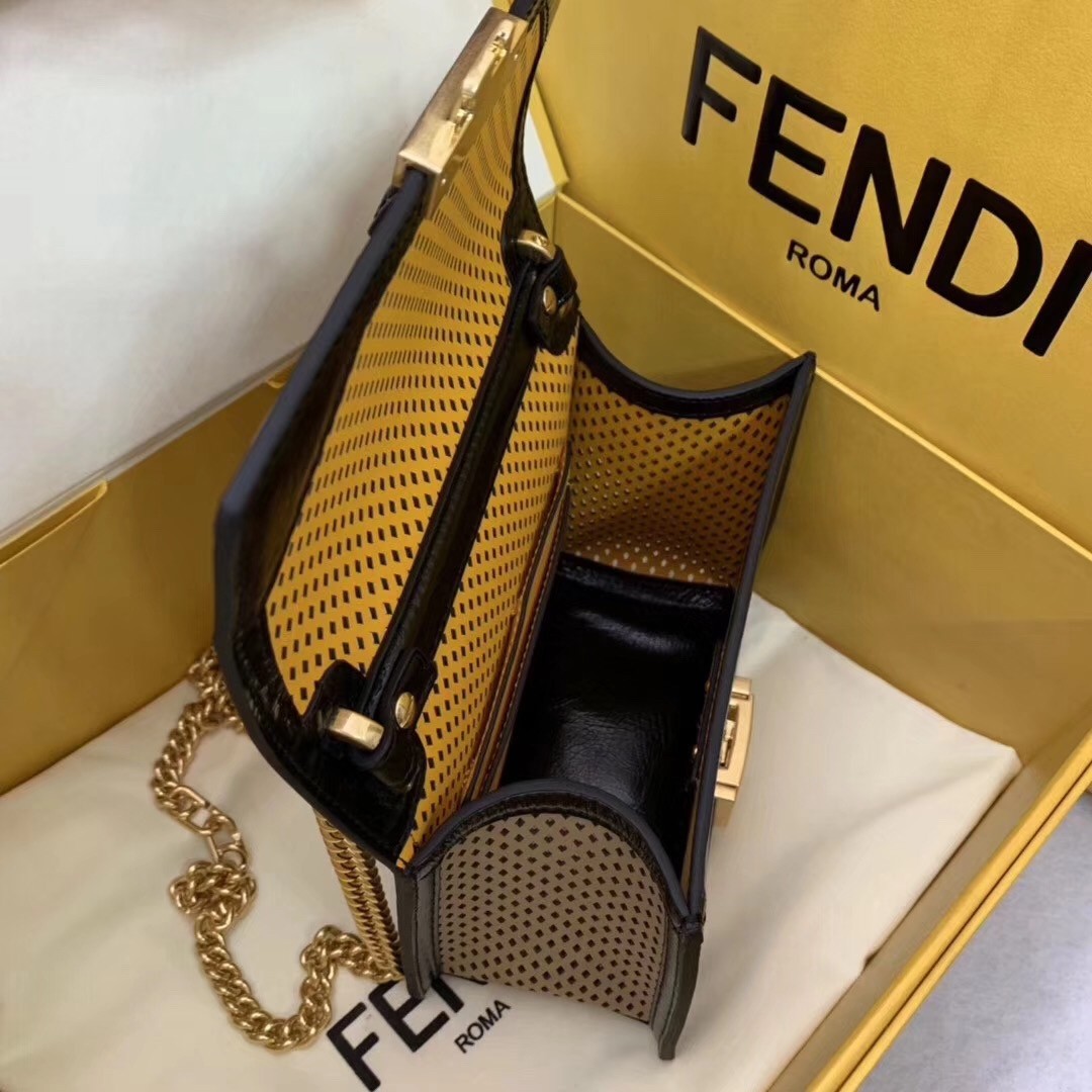 Fendi Small Kan U Bag In Beige Perforated Calf Leather