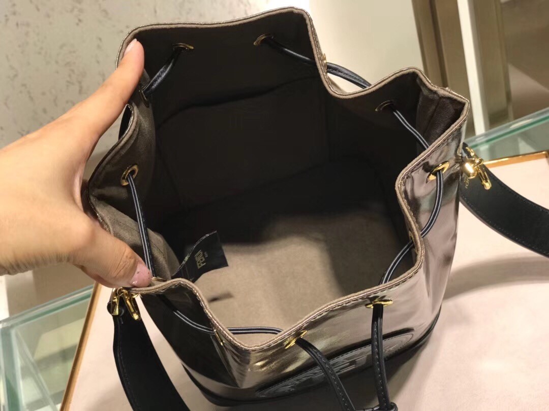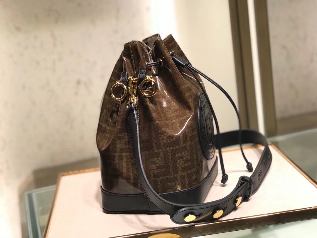 This season the sleek line of Fendi bags are highlighted by the iconic Fendi logo. Steal the spotlight by adding one of these designs that work for every occasion to your wardrobe. Tailored in Italy and fashioned from calf leather, this Mon Tresor bucket bag from Fendi features a detachable and adjustable shoulder strap, a drawstring fastening, a main internal compartment, an internal slip pocket, an internal logo patch, an iconic FF motif and a contrasting Fendi stamp patch.