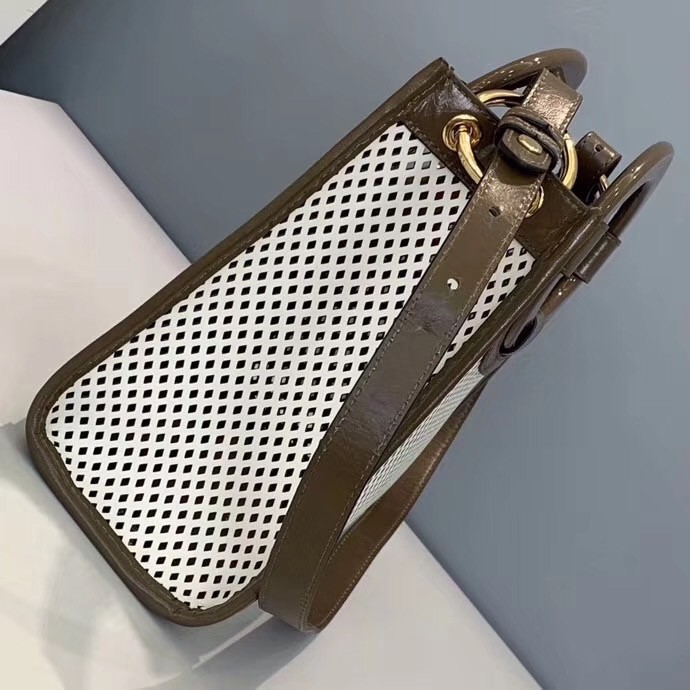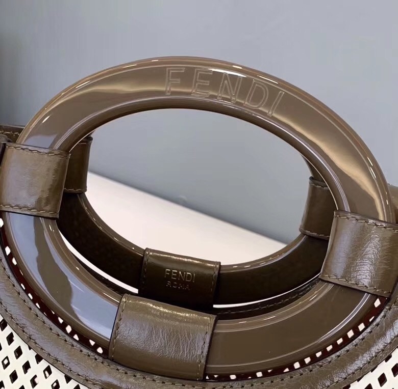 Though it’s ditched the embossed FF logo and replaced it with perforated leather, this tote bag is still textbook Fendi. If the classic shape is not enough to go by, the contrasting trim and subtle branding dotted on the front and carry handles should be. There’s a detachable strap, which we’re swinging over a denim jumpsuit.