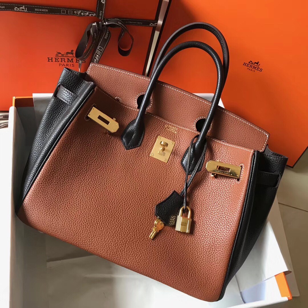 Hermes Bi-Color Birkin 30cm Bag In Brown/Black Clemence Leather