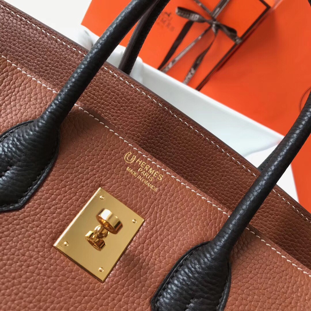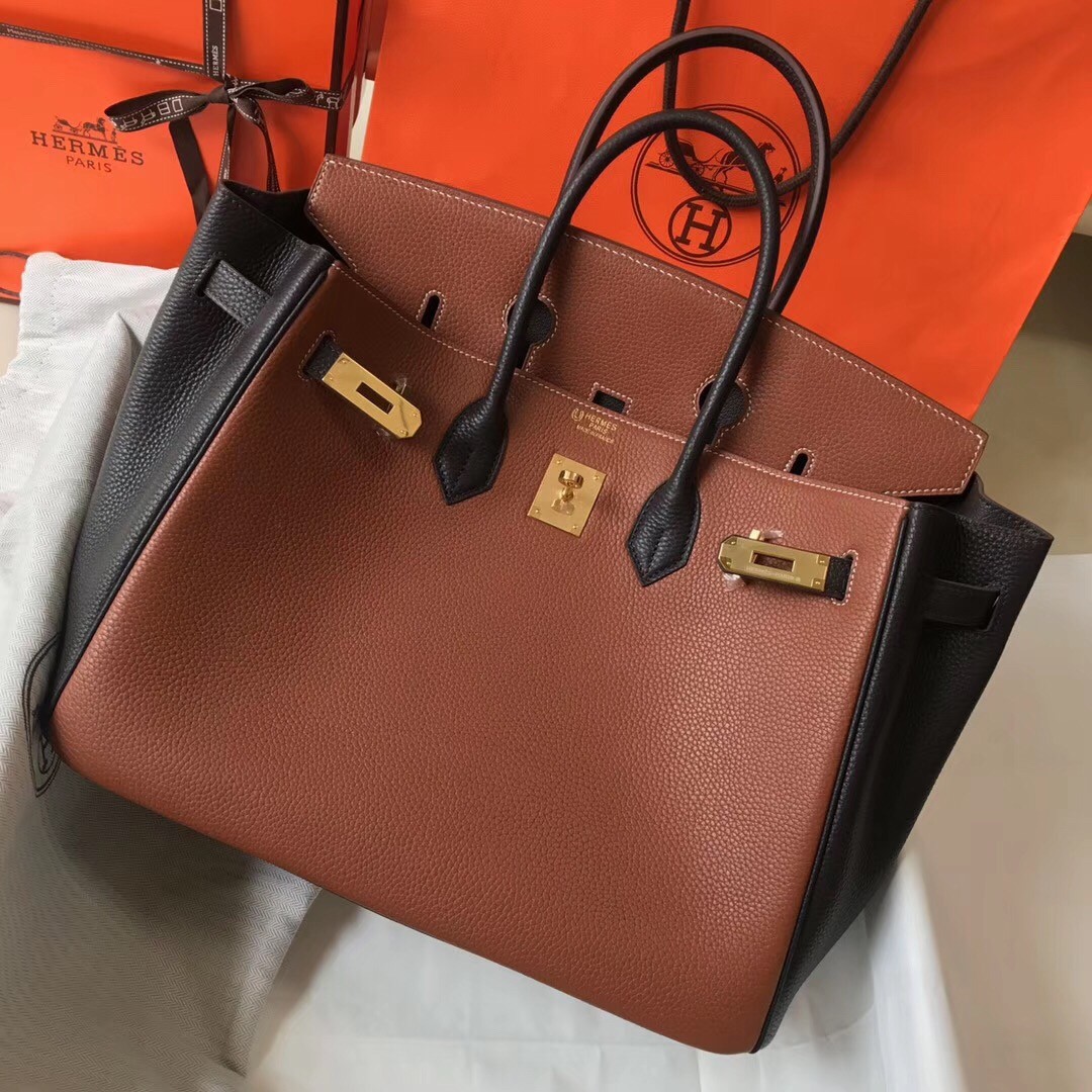 Hermes Bi-Color Birkin 35cm Bag In Brown/Black Clemence Leather